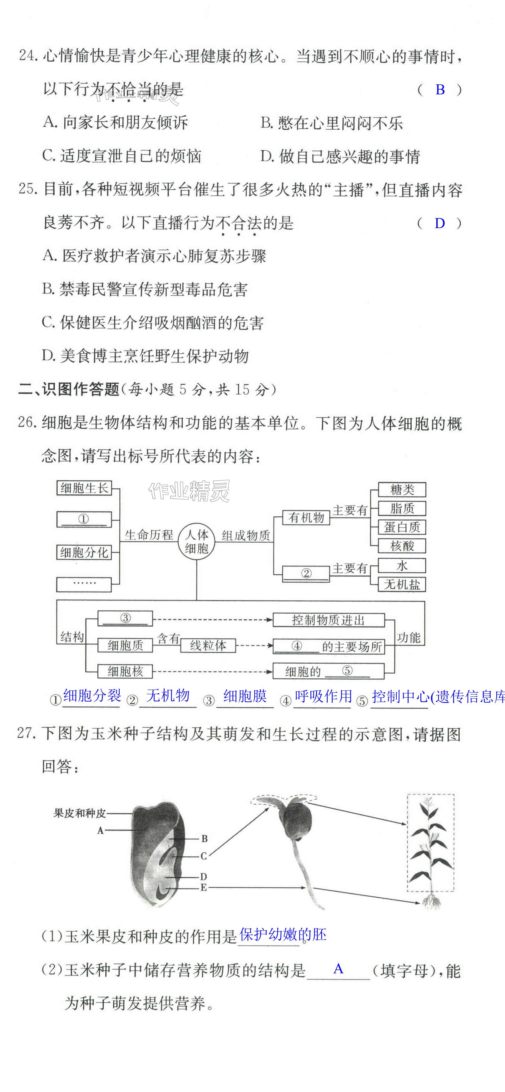 注:目前有些书本章节名称可能整理的还不是很完善,但都是按照顺序排列的,请同学们按照顺序仔细查找。练习册 2024年湖南中考必备生物 答案主要是用来给同学们做完题方便对答案用的,请勿直接抄袭。