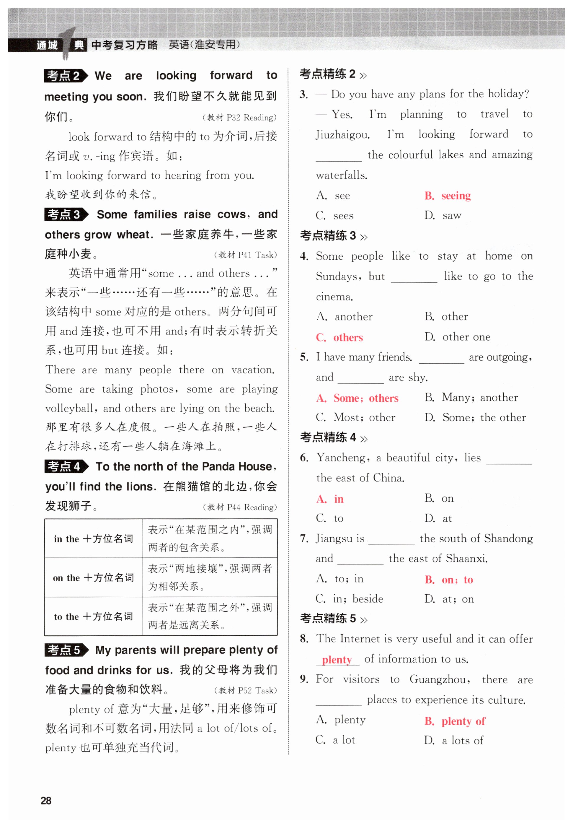 注:目前有些书本章节名称可能整理的还不是很完善,但都是按照顺序排列的,请同学们按照顺序仔细查找。练习册 2024年通城1典中考复习方略英语淮安专版 答案主要是用来给同学们做完题方便对答案用的,请勿直接抄袭。