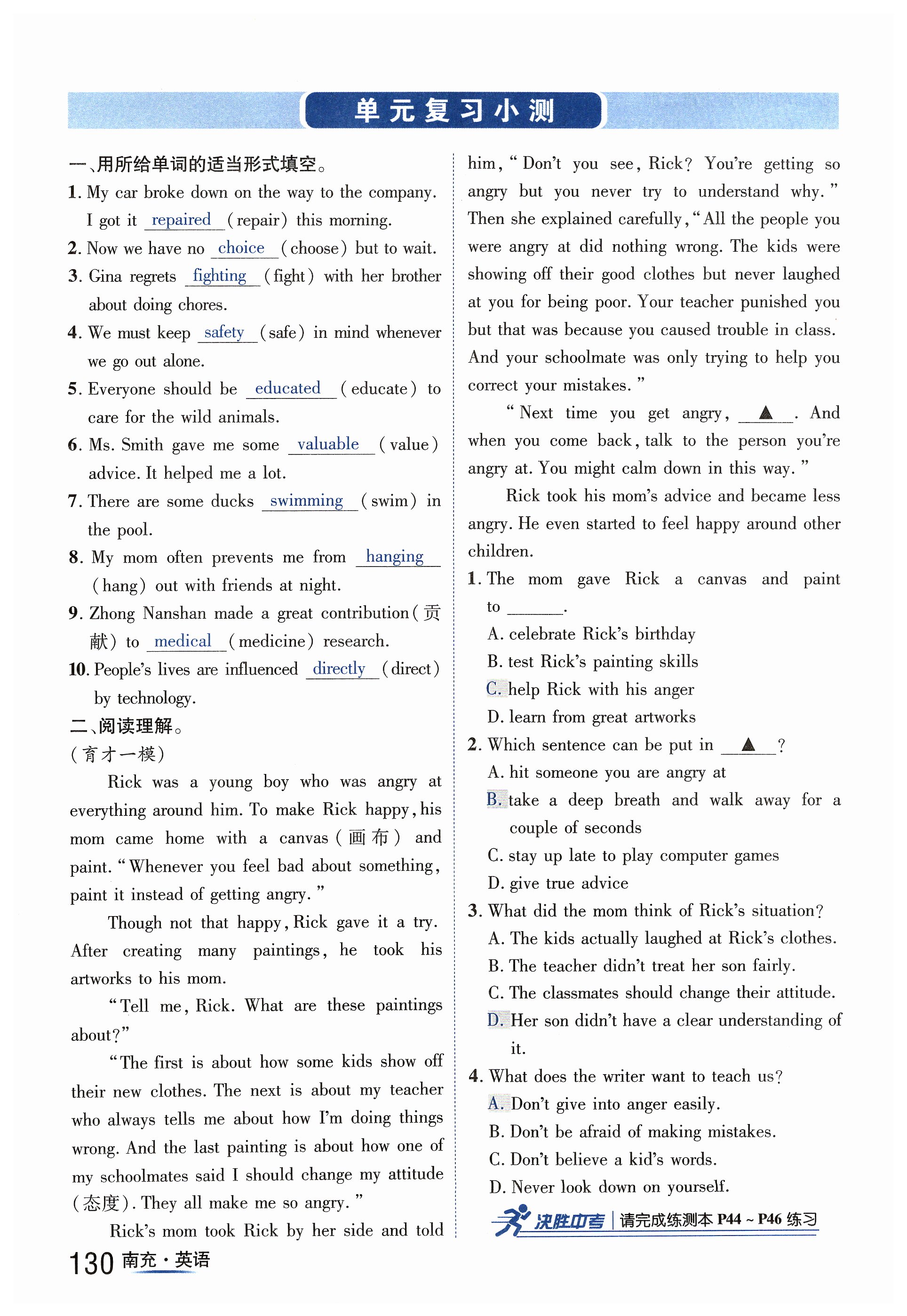 注:目前有些书本章节名称可能整理的还不是很完善,但都是按照顺序排列的,请同学们按照顺序仔细查找。练习册 2024年国华图书中考拐点英语南充专版 答案主要是用来给同学们做完题方便对答案用的,请勿直接抄袭。