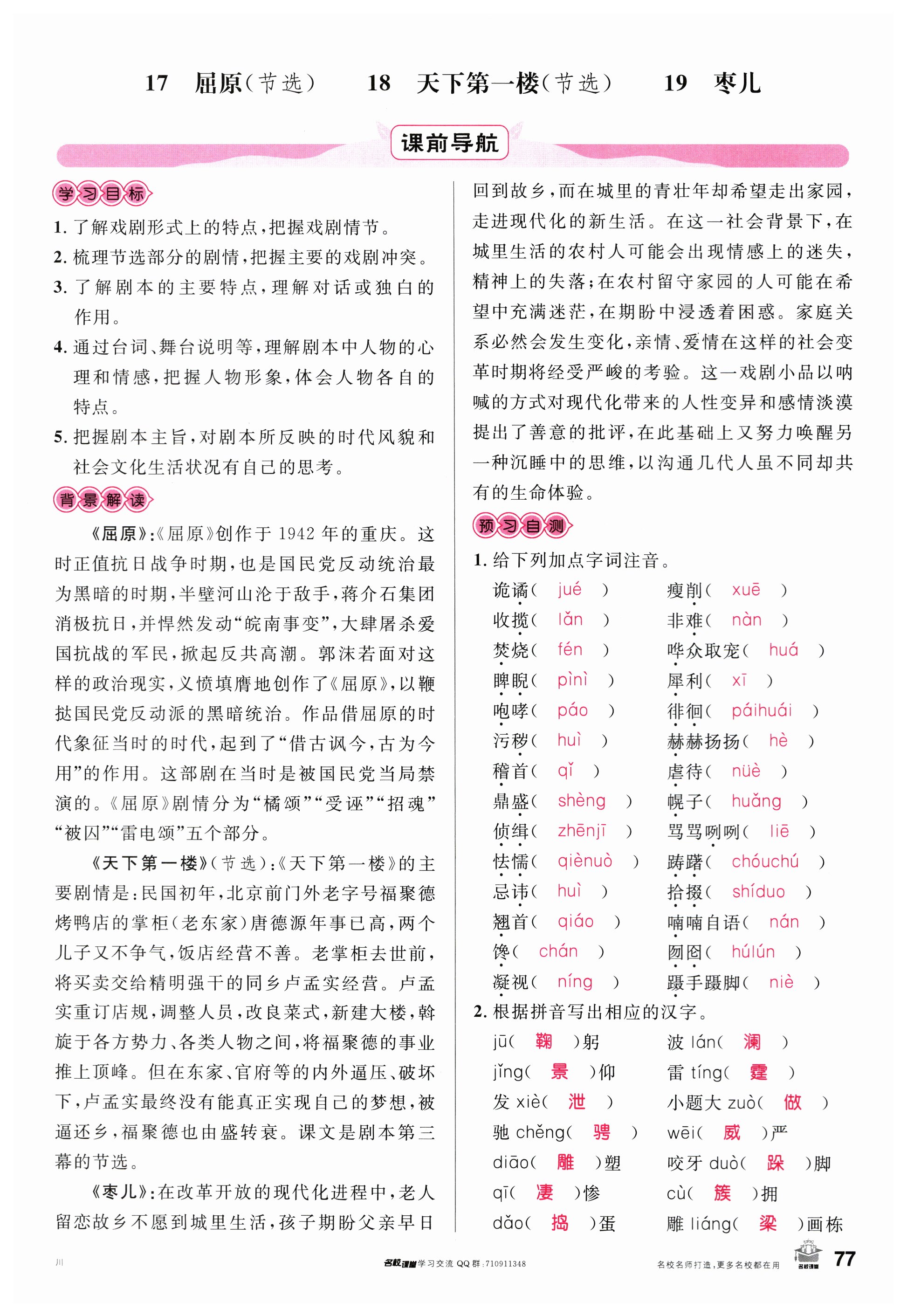注:目前有些书本章节名称可能整理的还不是很完善,但都是按照顺序排列的,请同学们按照顺序仔细查找。练习册 2024年名校课堂九年级语文下册人教版四川专版 答案主要是用来给同学们做完题方便对答案用的,请勿直接抄袭。