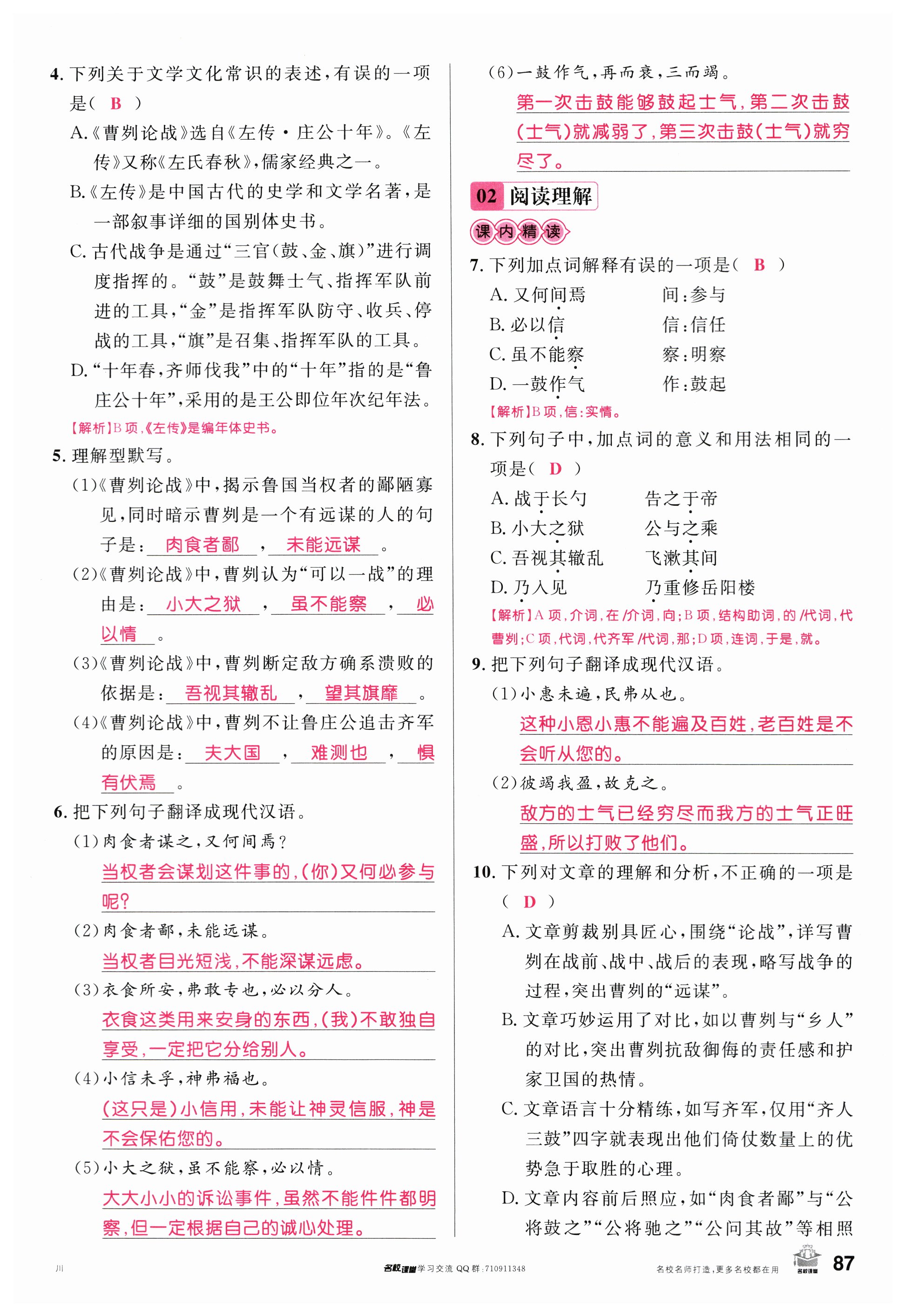 注:目前有些书本章节名称可能整理的还不是很完善,但都是按照顺序排列的,请同学们按照顺序仔细查找。练习册 2024年名校课堂九年级语文下册人教版四川专版 答案主要是用来给同学们做完题方便对答案用的,请勿直接抄袭。