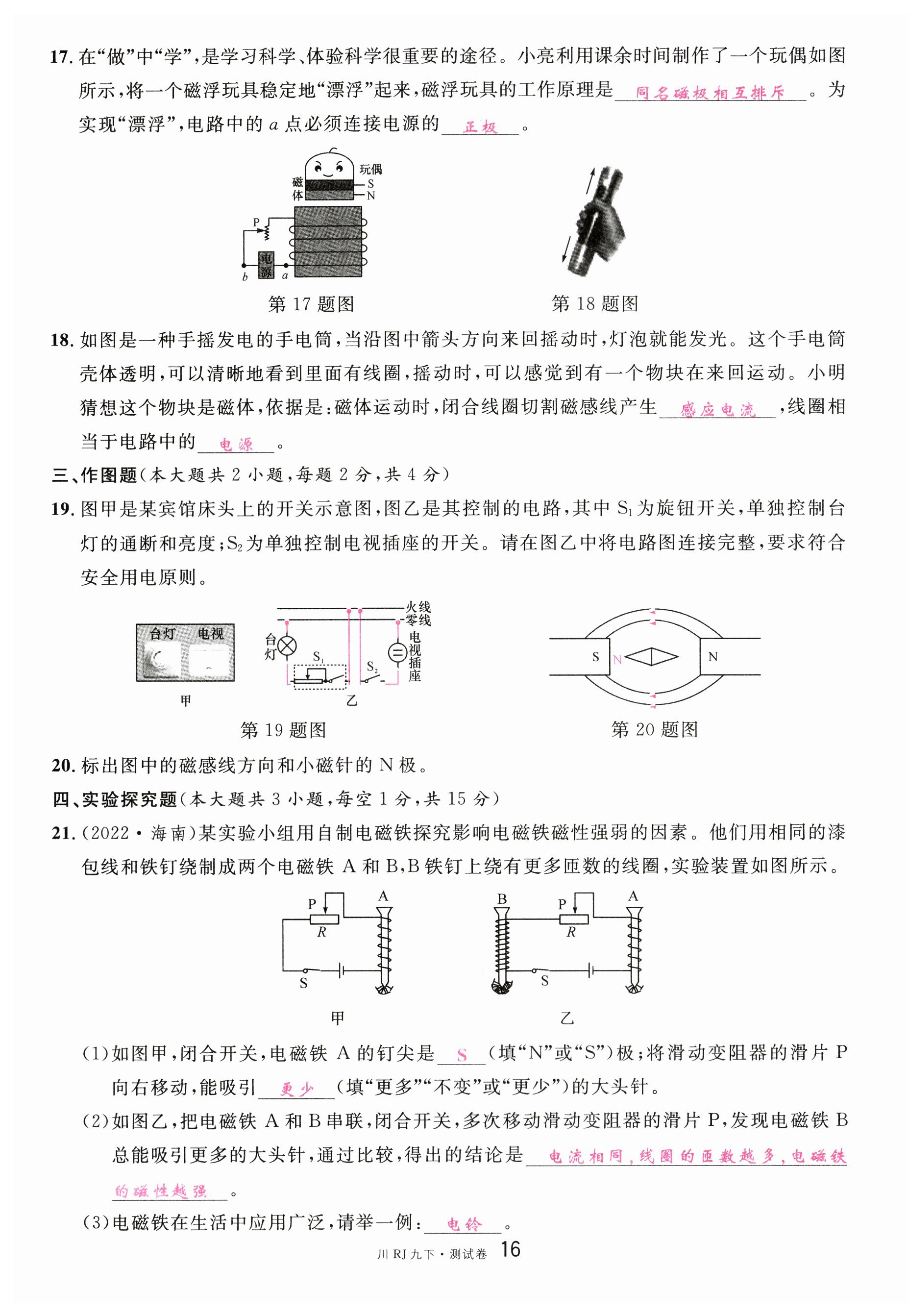 注:目前有些书本章节名称可能整理的还不是很完善,但都是按照顺序排列的,请同学们按照顺序仔细查找。练习册 2024年名校课堂九年级物理下册人教版四川专版 答案主要是用来给同学们做完题方便对答案用的,请勿直接抄袭。