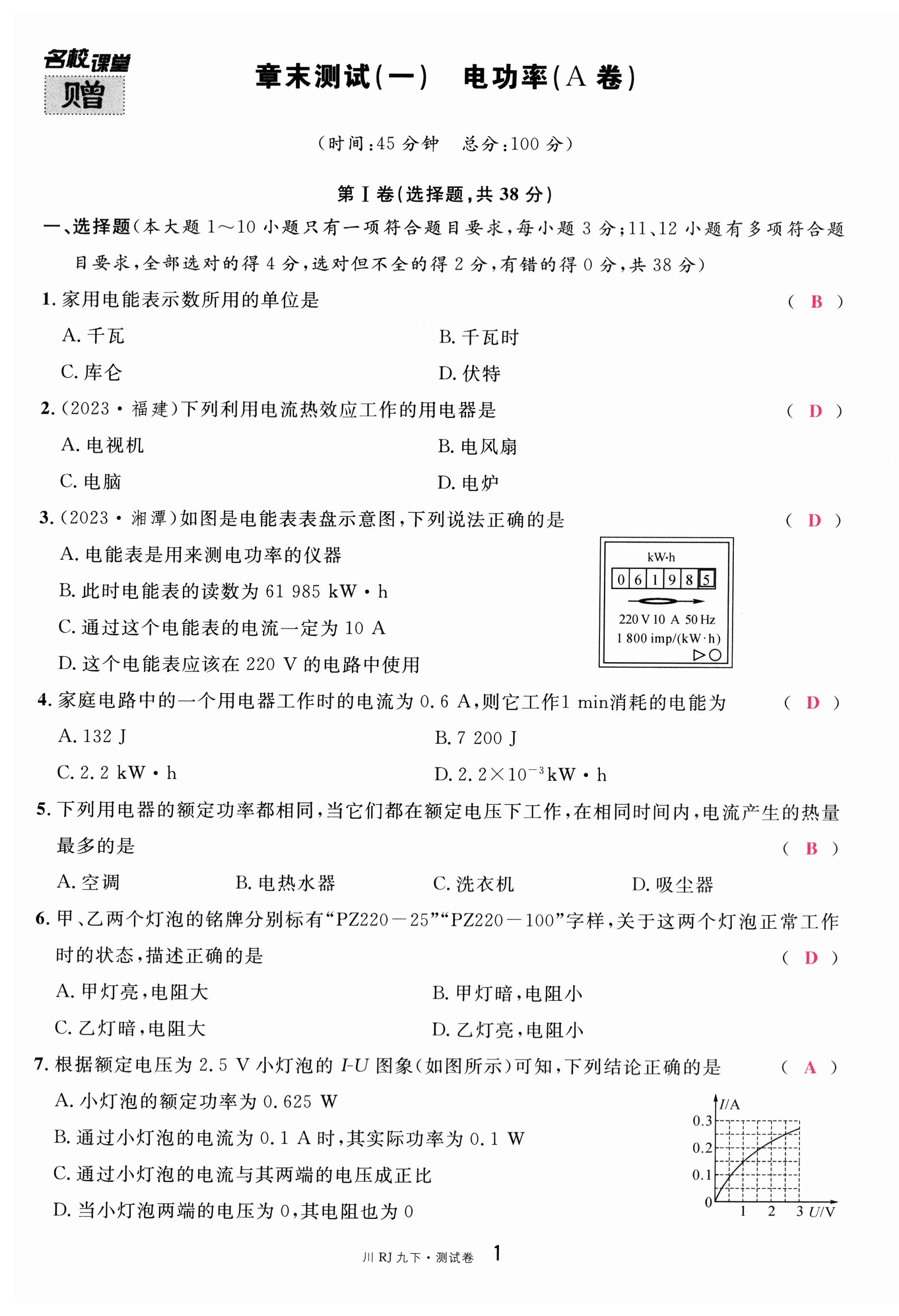 注:目前有些书本章节名称可能整理的还不是很完善,但都是按照顺序排列的,请同学们按照顺序仔细查找。练习册 2024年名校课堂九年级物理下册人教版四川专版 答案主要是用来给同学们做完题方便对答案用的,请勿直接抄袭。
