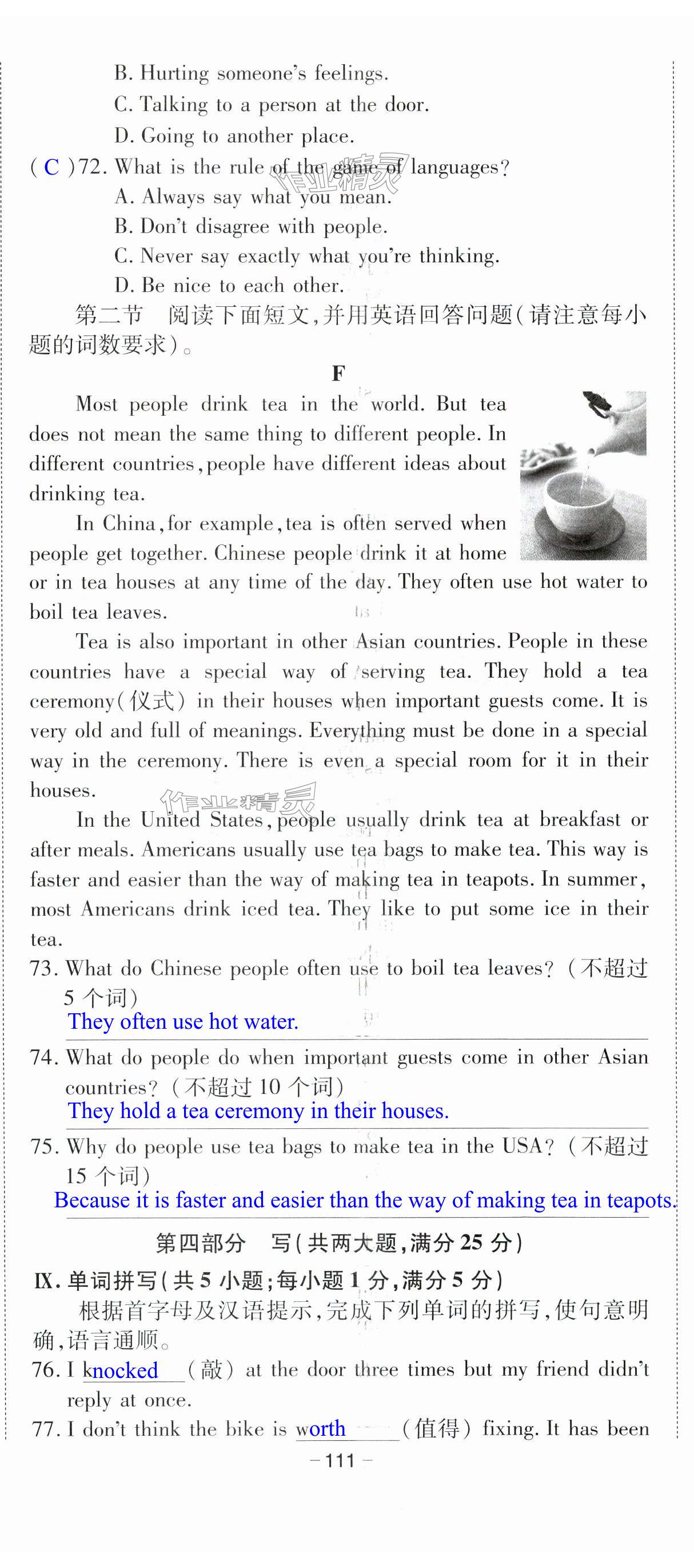 注:目前有些书本章节名称可能整理的还不是很完善,但都是按照顺序排列的,请同学们按照顺序仔细查找。练习册 2024年课时A计划九年级英语下册人教版安徽专版 答案主要是用来给同学们做完题方便对答案用的,请勿直接抄袭。