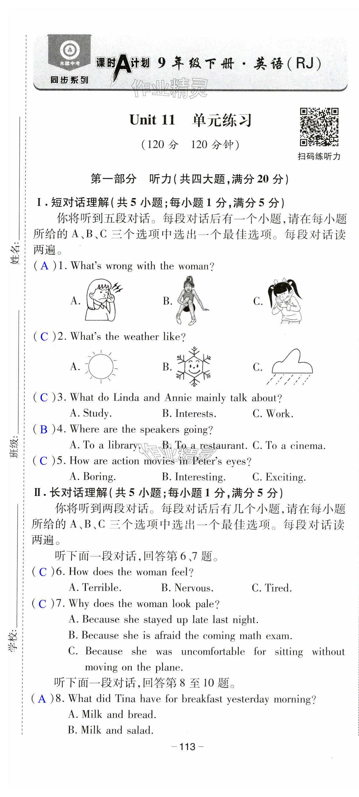 注:目前有些书本章节名称可能整理的还不是很完善,但都是按照顺序排列的,请同学们按照顺序仔细查找。练习册 2024年课时A计划九年级英语下册人教版安徽专版 答案主要是用来给同学们做完题方便对答案用的,请勿直接抄袭。