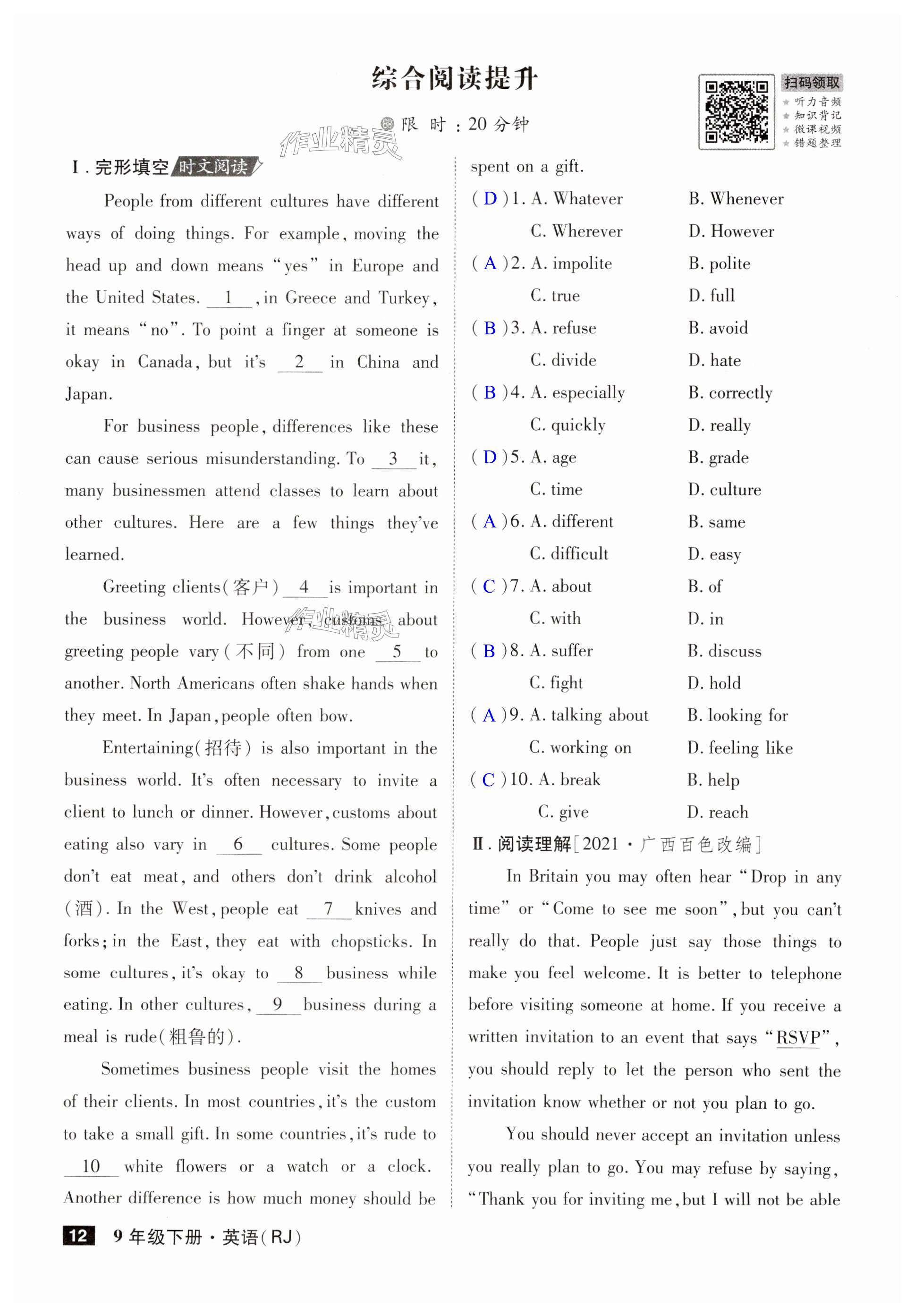 注:目前有些书本章节名称可能整理的还不是很完善,但都是按照顺序排列的,请同学们按照顺序仔细查找。练习册 2024年课时A计划九年级英语下册人教版安徽专版 答案主要是用来给同学们做完题方便对答案用的,请勿直接抄袭。
