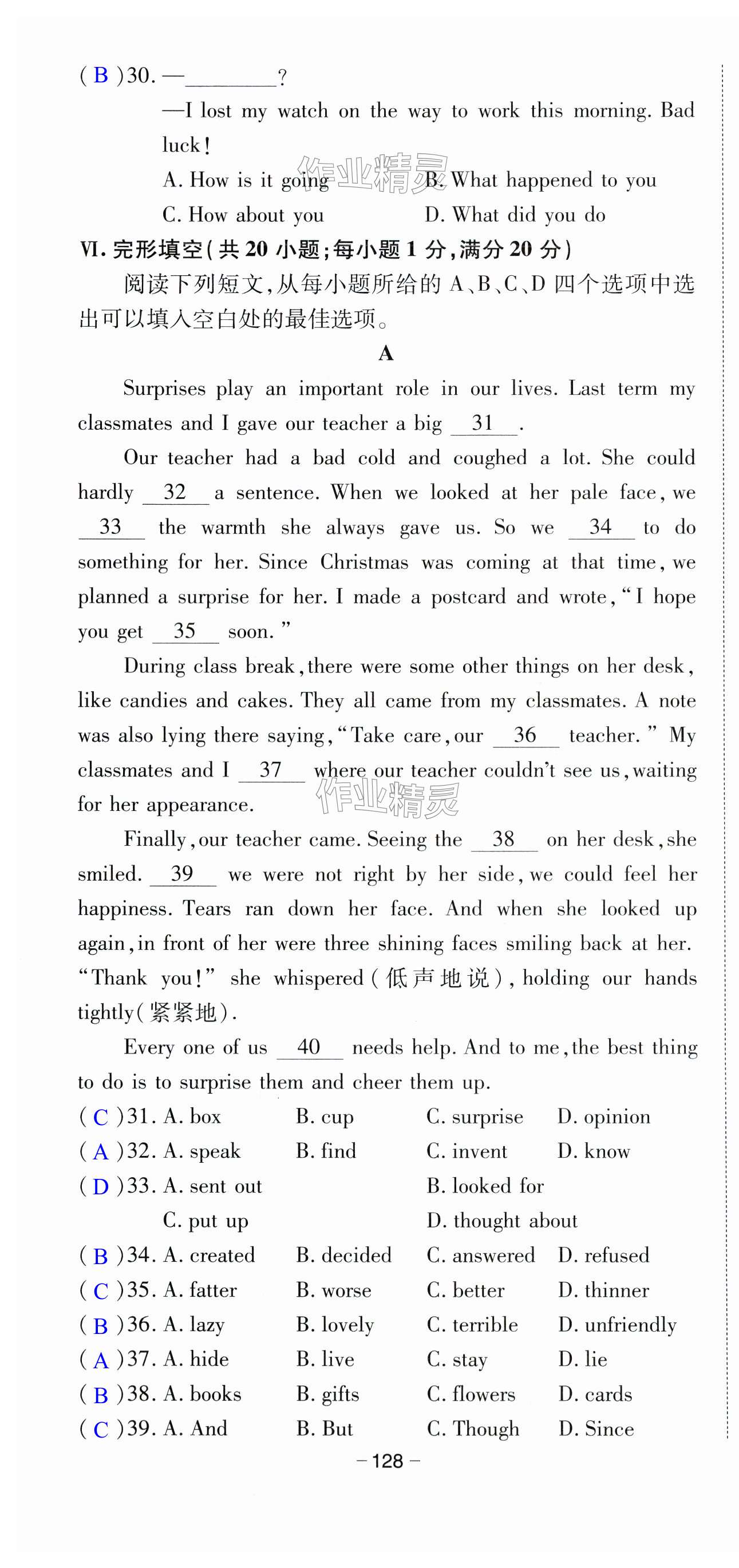 注:目前有些书本章节名称可能整理的还不是很完善,但都是按照顺序排列的,请同学们按照顺序仔细查找。练习册 2024年课时A计划九年级英语下册人教版安徽专版 答案主要是用来给同学们做完题方便对答案用的,请勿直接抄袭。