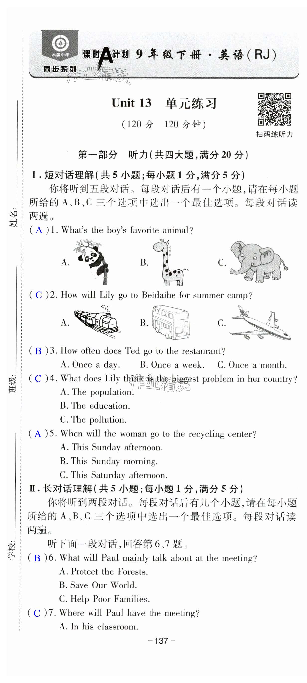 注:目前有些书本章节名称可能整理的还不是很完善,但都是按照顺序排列的,请同学们按照顺序仔细查找。练习册 2024年课时A计划九年级英语下册人教版安徽专版 答案主要是用来给同学们做完题方便对答案用的,请勿直接抄袭。