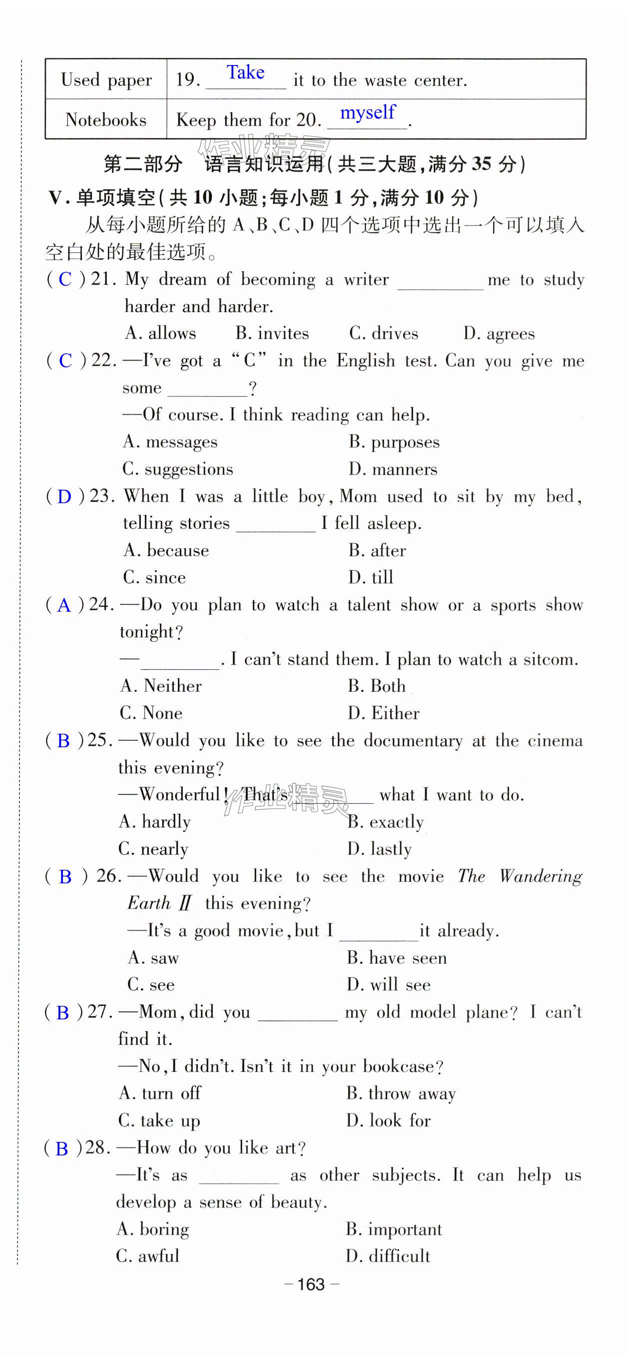 注:目前有些书本章节名称可能整理的还不是很完善,但都是按照顺序排列的,请同学们按照顺序仔细查找。练习册 2024年课时A计划九年级英语下册人教版安徽专版 答案主要是用来给同学们做完题方便对答案用的,请勿直接抄袭。