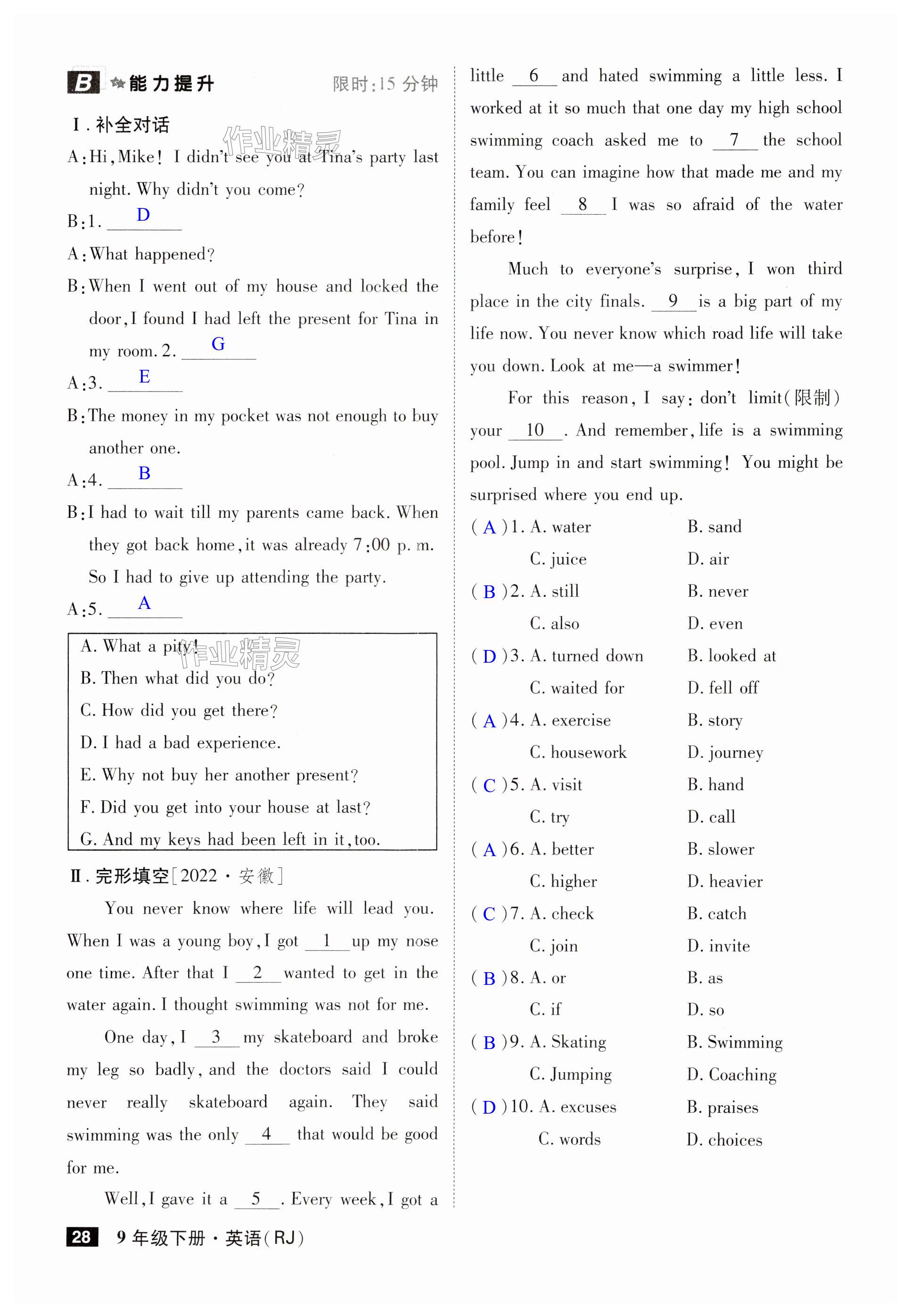 注:目前有些书本章节名称可能整理的还不是很完善,但都是按照顺序排列的,请同学们按照顺序仔细查找。练习册 2024年课时A计划九年级英语下册人教版安徽专版 答案主要是用来给同学们做完题方便对答案用的,请勿直接抄袭。