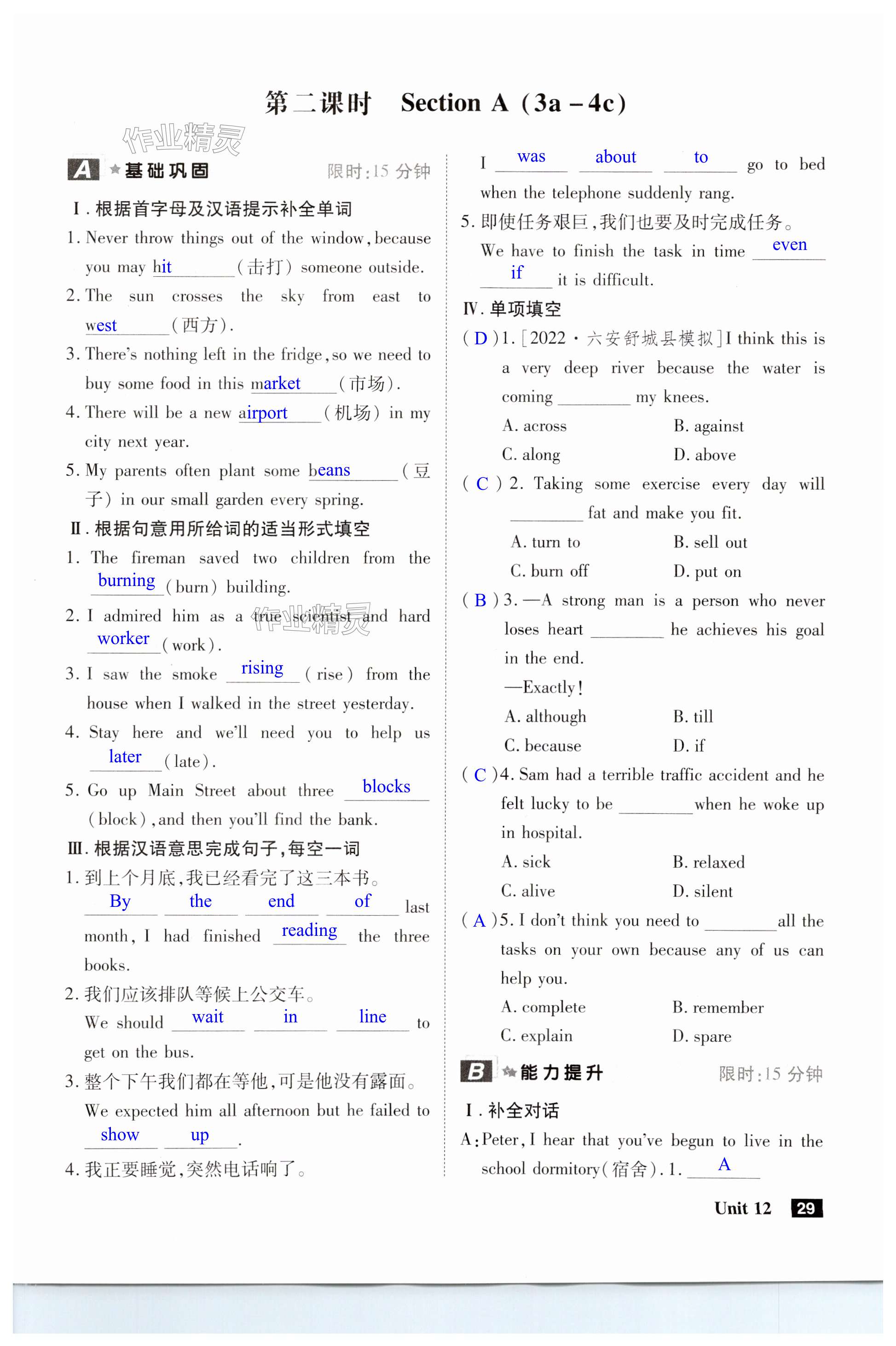 注:目前有些书本章节名称可能整理的还不是很完善,但都是按照顺序排列的,请同学们按照顺序仔细查找。练习册 2024年课时A计划九年级英语下册人教版安徽专版 答案主要是用来给同学们做完题方便对答案用的,请勿直接抄袭。