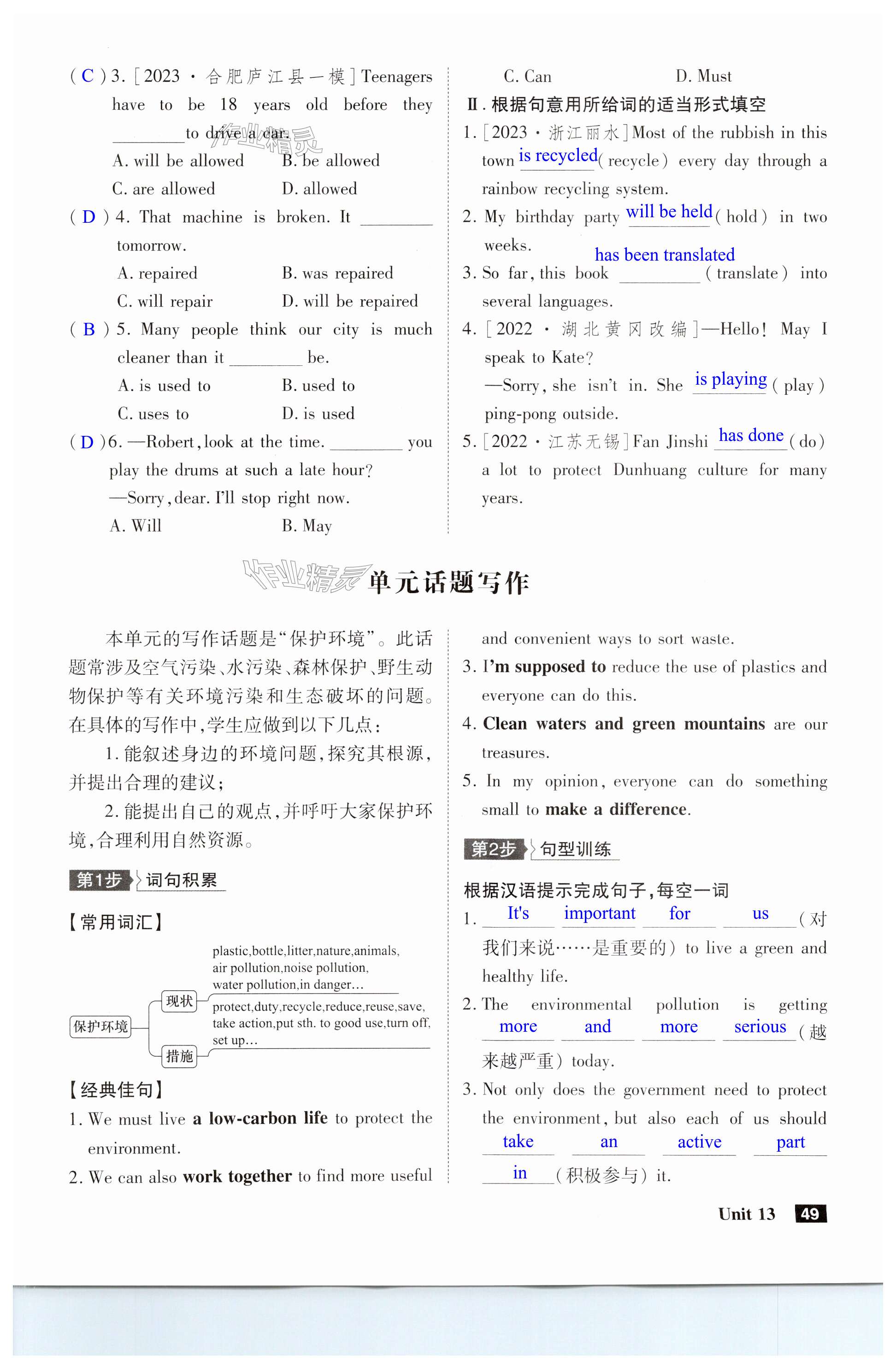 注:目前有些书本章节名称可能整理的还不是很完善,但都是按照顺序排列的,请同学们按照顺序仔细查找。练习册 2024年课时A计划九年级英语下册人教版安徽专版 答案主要是用来给同学们做完题方便对答案用的,请勿直接抄袭。