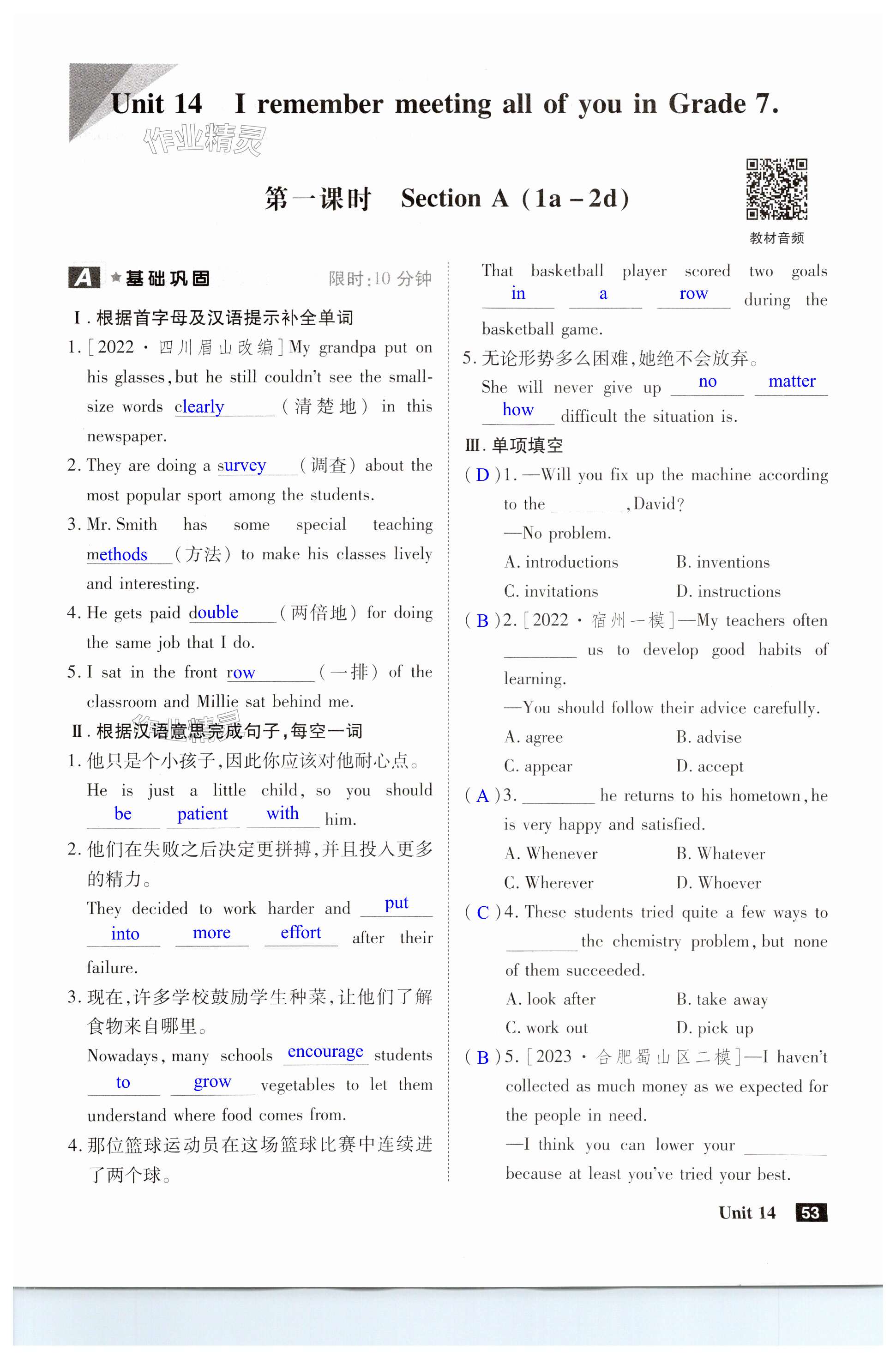 注:目前有些书本章节名称可能整理的还不是很完善,但都是按照顺序排列的,请同学们按照顺序仔细查找。练习册 2024年课时A计划九年级英语下册人教版安徽专版 答案主要是用来给同学们做完题方便对答案用的,请勿直接抄袭。