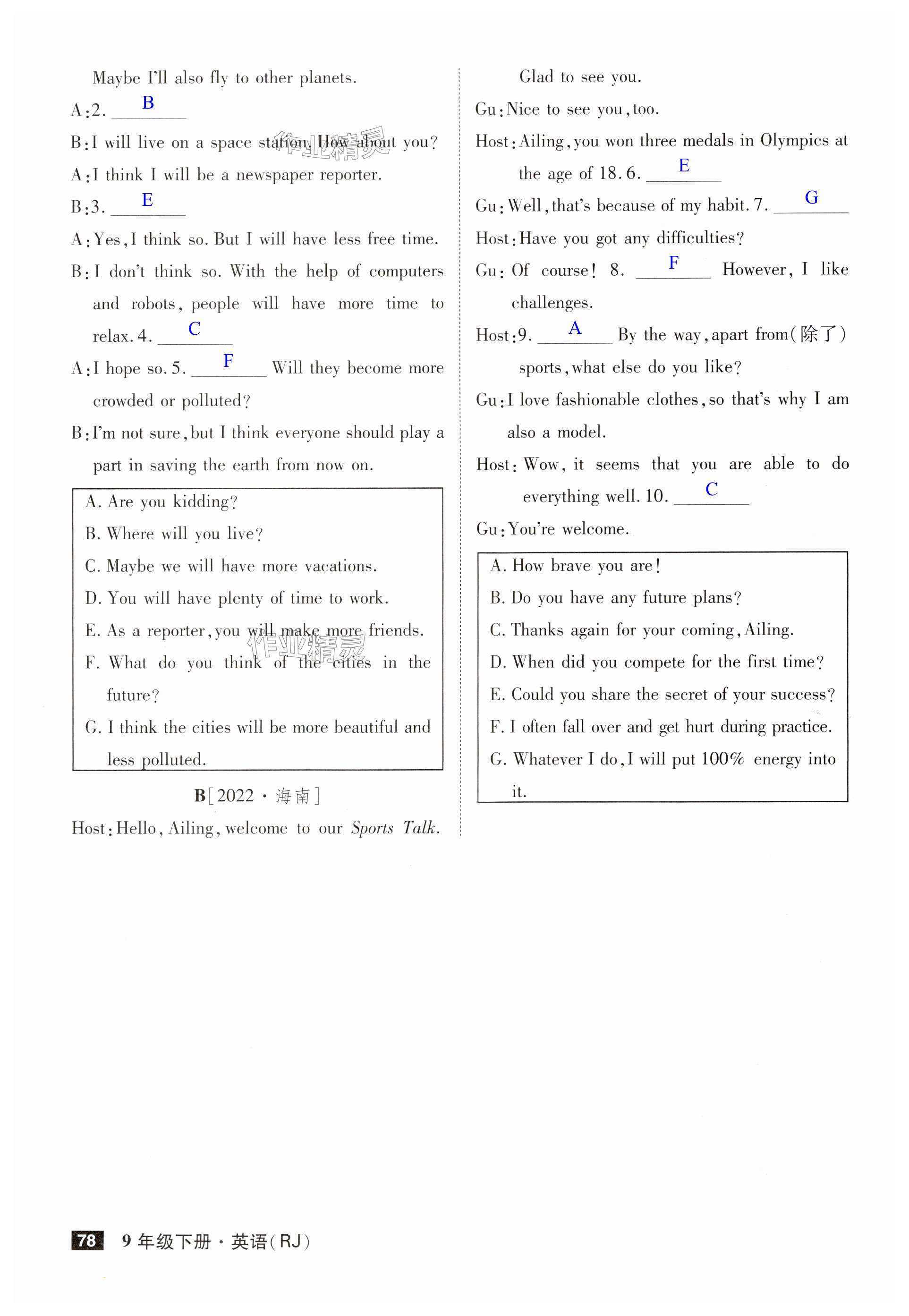 注:目前有些书本章节名称可能整理的还不是很完善,但都是按照顺序排列的,请同学们按照顺序仔细查找。练习册 2024年课时A计划九年级英语下册人教版安徽专版 答案主要是用来给同学们做完题方便对答案用的,请勿直接抄袭。