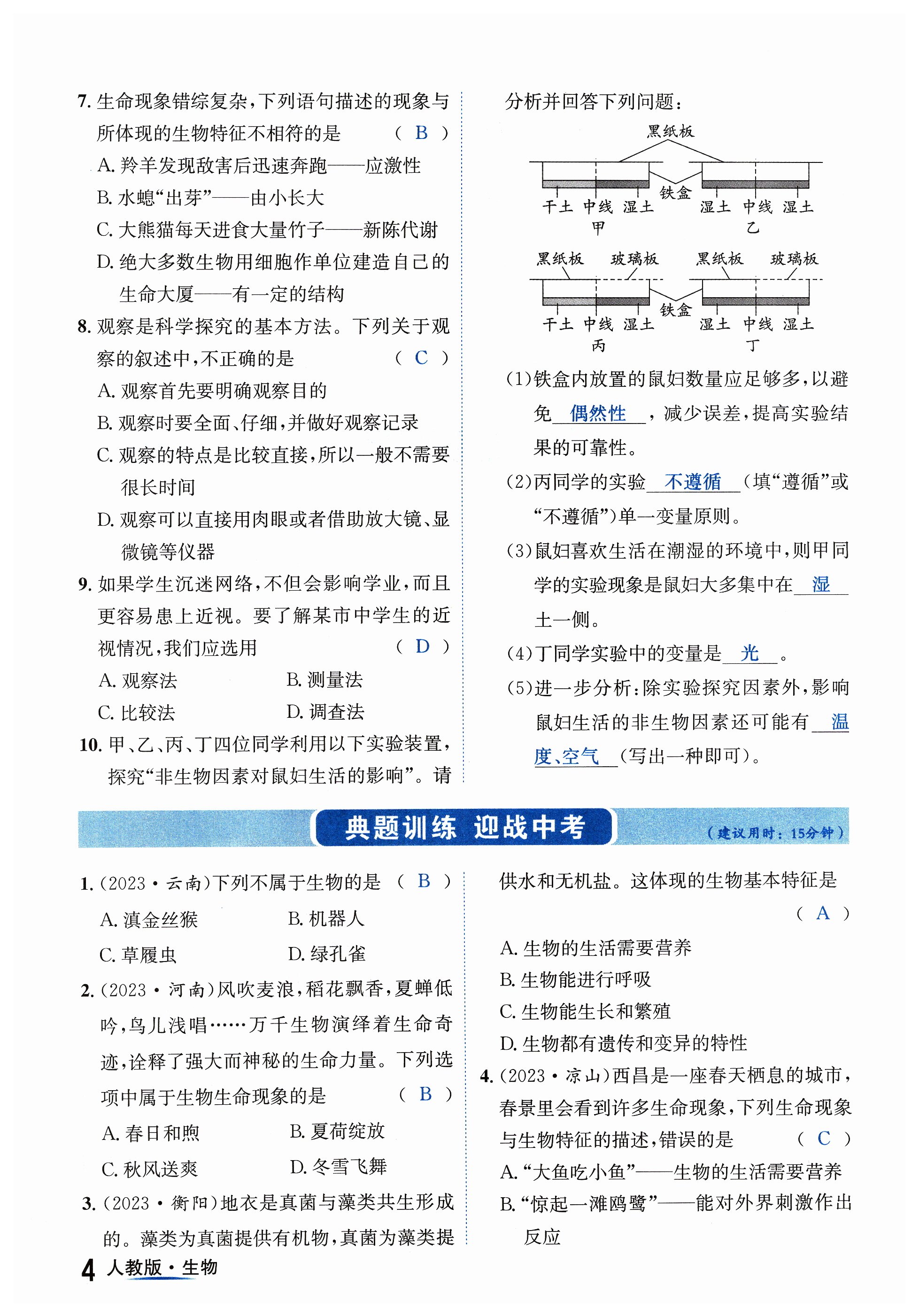 注:目前有些书本章节名称可能整理的还不是很完善,但都是按照顺序排列的,请同学们按照顺序仔细查找。练习册 2024年国华考试中考总动员生物人教版四川专版 答案主要是用来给同学们做完题方便对答案用的,请勿直接抄袭。