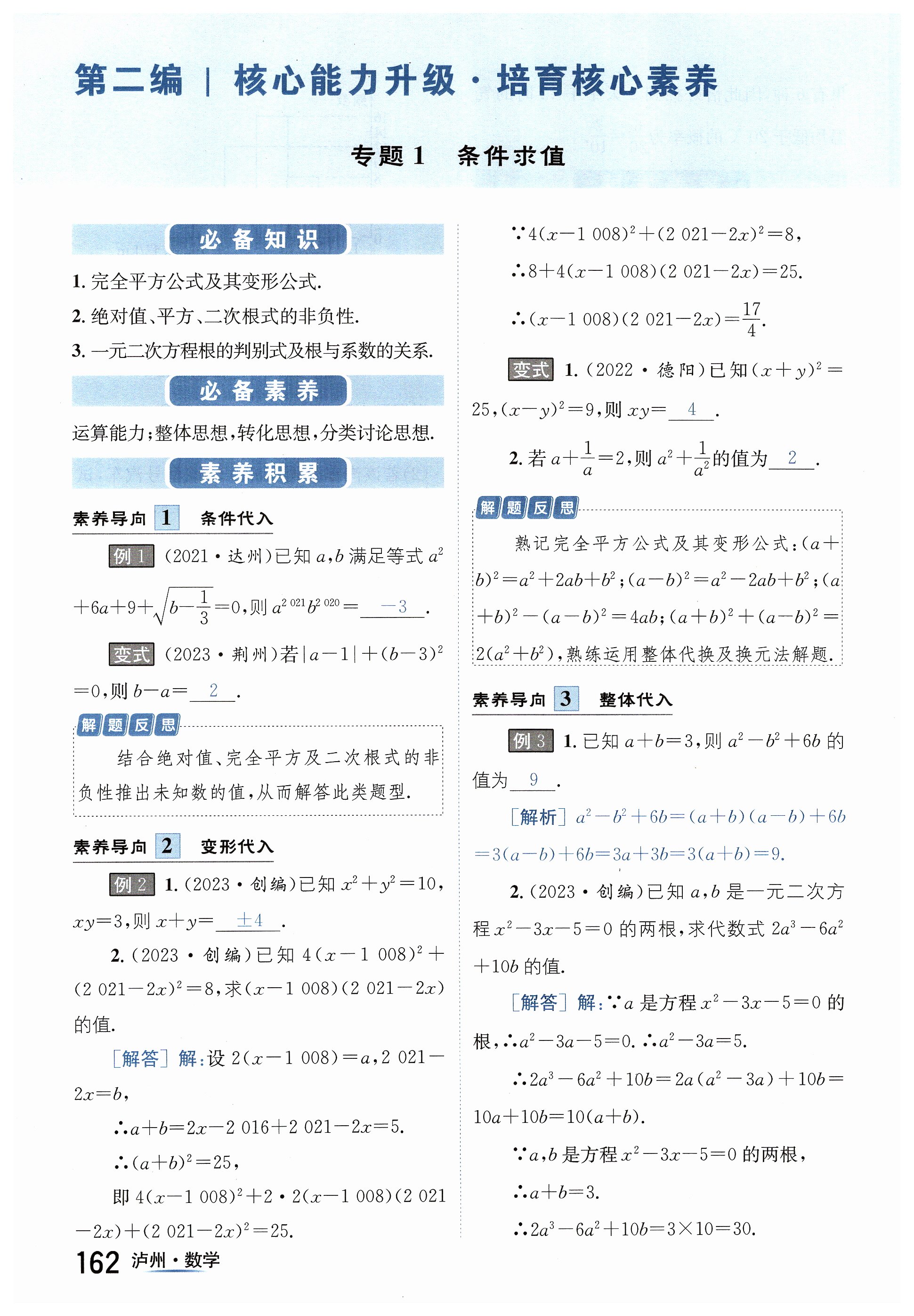 注:目前有些书本章节名称可能整理的还不是很完善,但都是按照顺序排列的,请同学们按照顺序仔细查找。练习册 2024年国华考试中考总动员数学泸州专版 答案主要是用来给同学们做完题方便对答案用的,请勿直接抄袭。