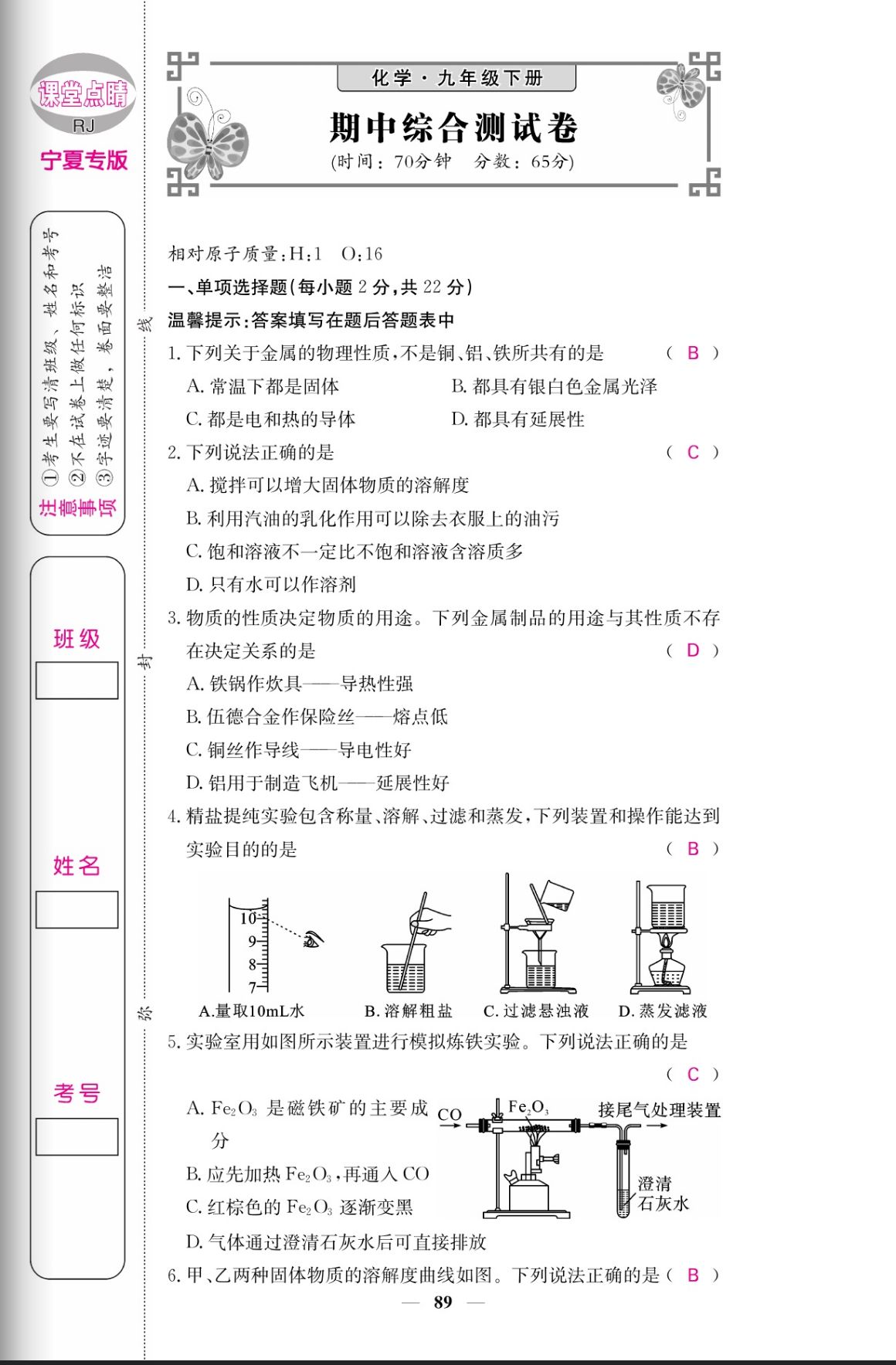 注:目前有些书本章节名称可能整理的还不是很完善,但都是按照顺序排列的,请同学们按照顺序仔细查找。练习册 2024年课堂点睛九年级化学下册人教版宁夏专版 答案主要是用来给同学们做完题方便对答案用的,请勿直接抄袭。