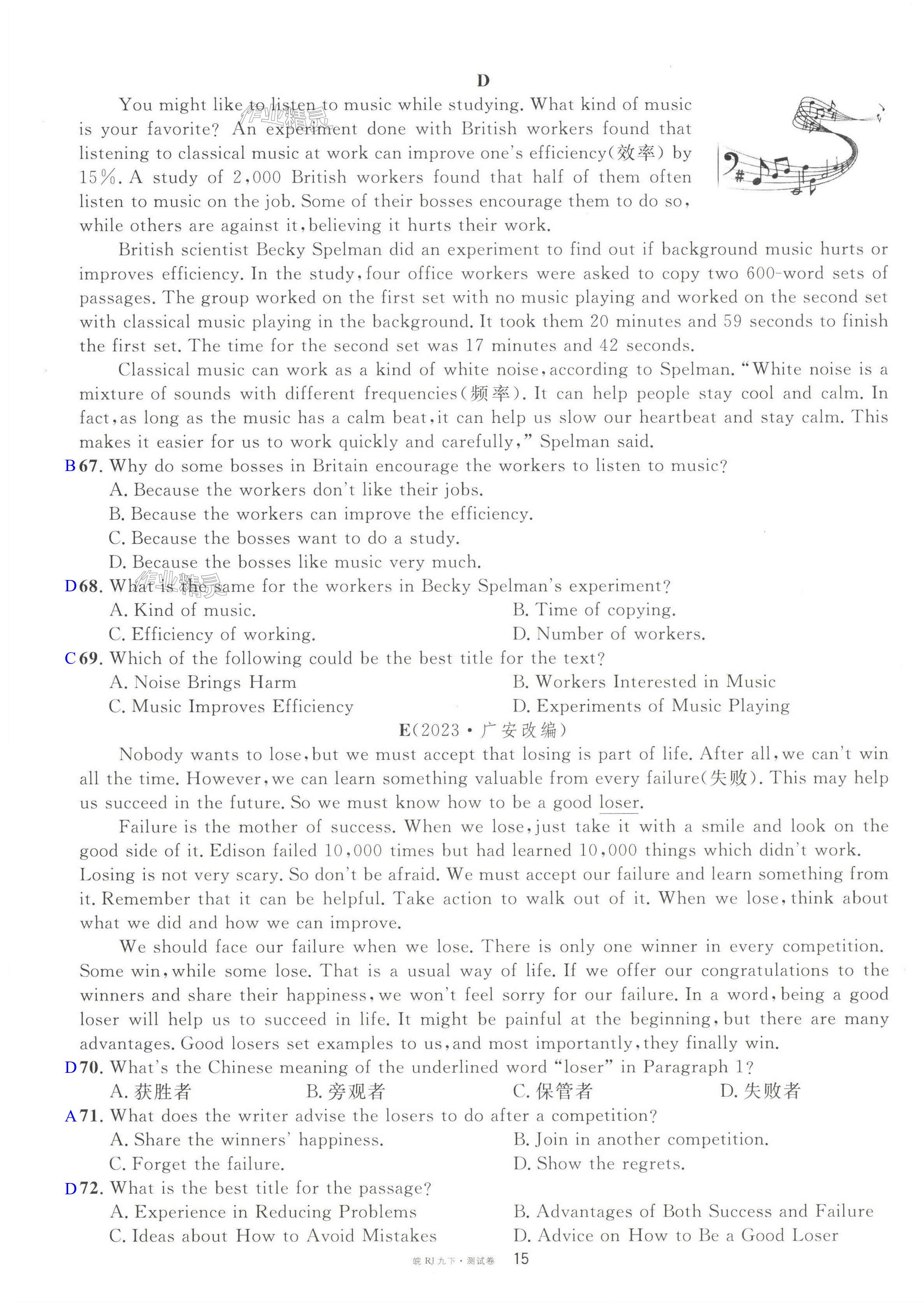 注:目前有些书本章节名称可能整理的还不是很完善,但都是按照顺序排列的,请同学们按照顺序仔细查找。练习册 2024年名校课堂九年级英语下册人教版安徽专版 答案主要是用来给同学们做完题方便对答案用的,请勿直接抄袭。