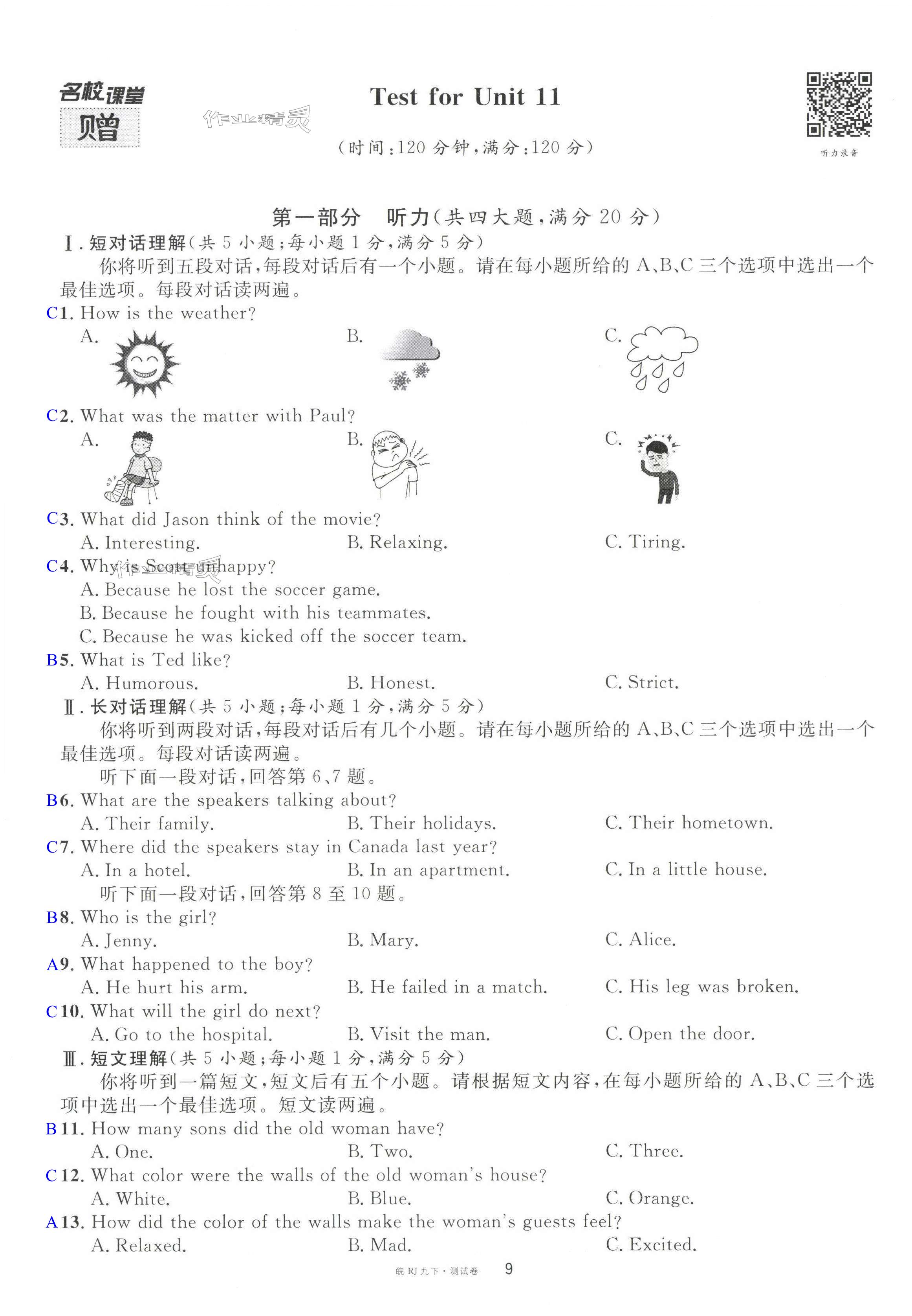 注:目前有些书本章节名称可能整理的还不是很完善,但都是按照顺序排列的,请同学们按照顺序仔细查找。练习册 2024年名校课堂九年级英语下册人教版安徽专版 答案主要是用来给同学们做完题方便对答案用的,请勿直接抄袭。