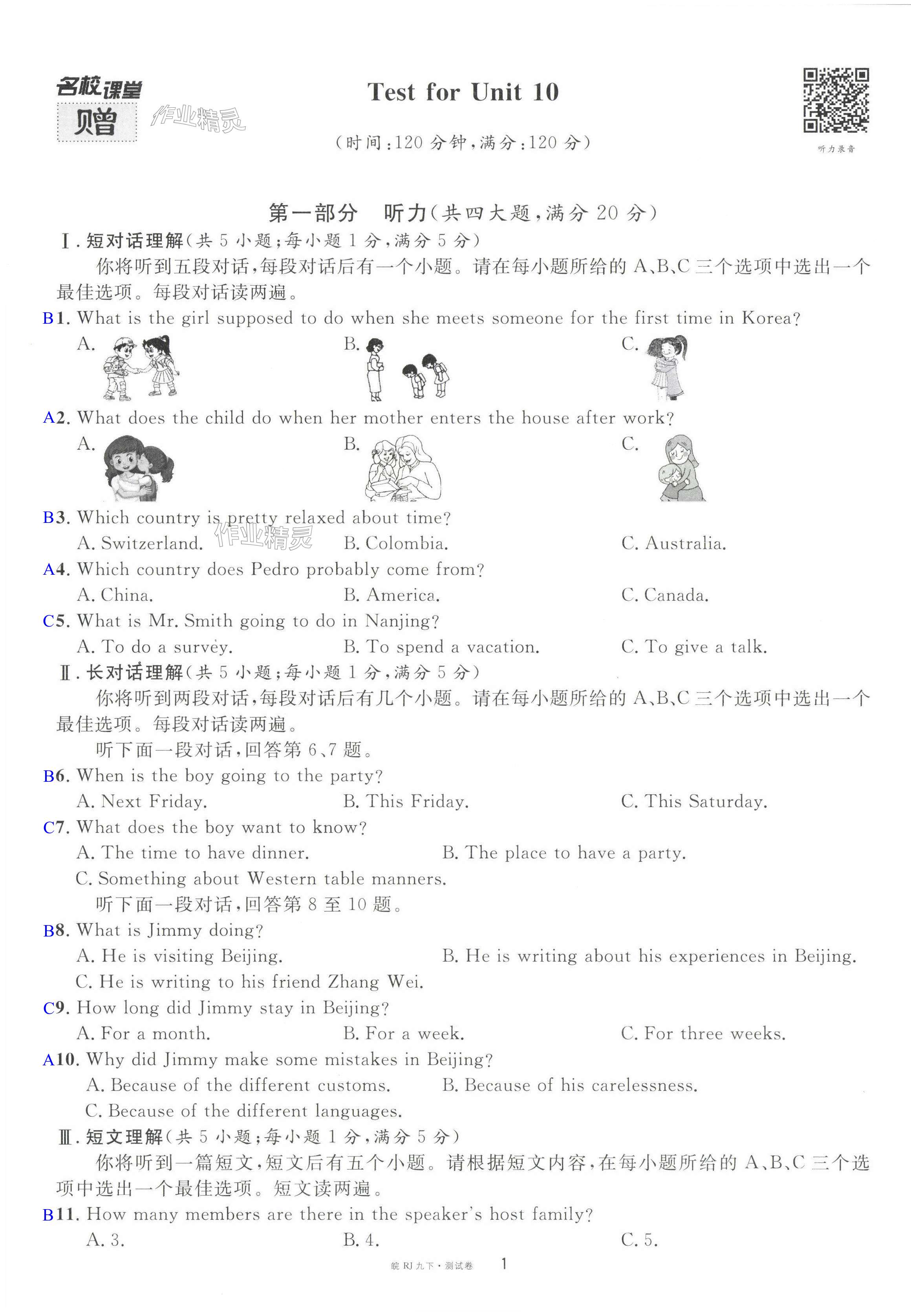 注:目前有些书本章节名称可能整理的还不是很完善,但都是按照顺序排列的,请同学们按照顺序仔细查找。练习册 2024年名校课堂九年级英语下册人教版安徽专版 答案主要是用来给同学们做完题方便对答案用的,请勿直接抄袭。