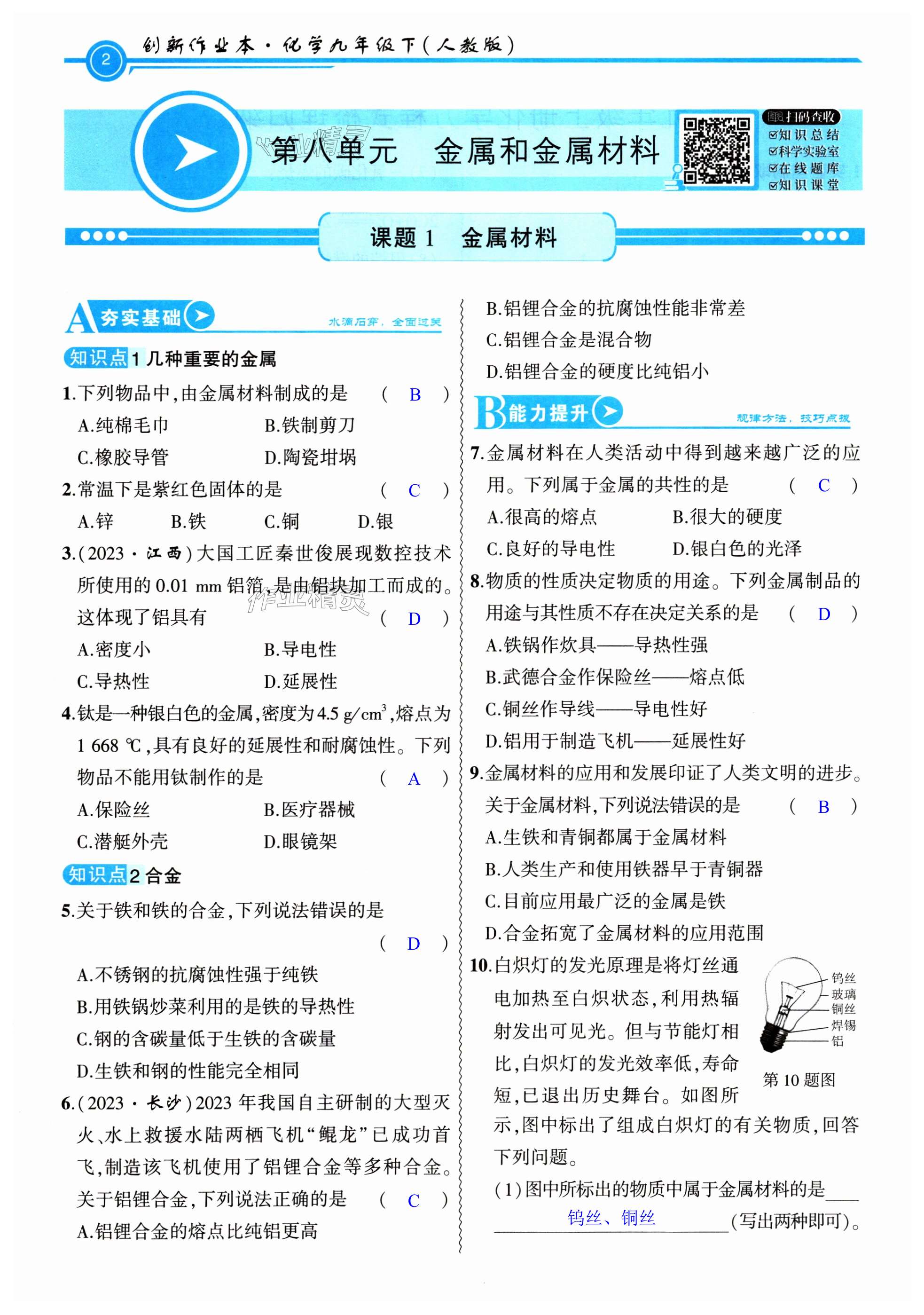 注:目前有些书本章节名称可能整理的还不是很完善,但都是按照顺序排列的,请同学们按照顺序仔细查找。练习册 2024年创新课堂创新作业本九年级化学下册人教版 答案主要是用来给同学们做完题方便对答案用的,请勿直接抄袭。