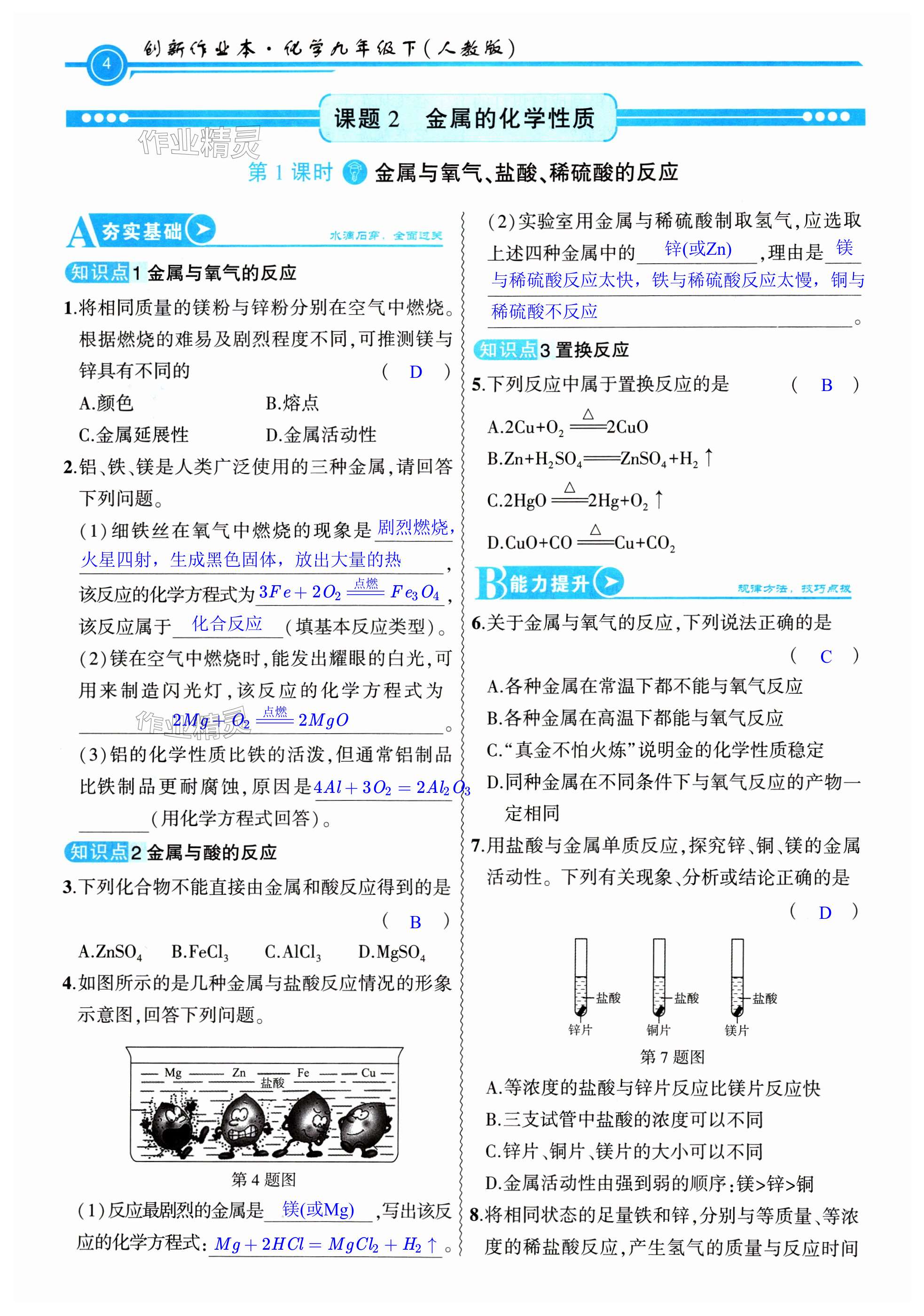 注:目前有些书本章节名称可能整理的还不是很完善,但都是按照顺序排列的,请同学们按照顺序仔细查找。练习册 2024年创新课堂创新作业本九年级化学下册人教版 答案主要是用来给同学们做完题方便对答案用的,请勿直接抄袭。