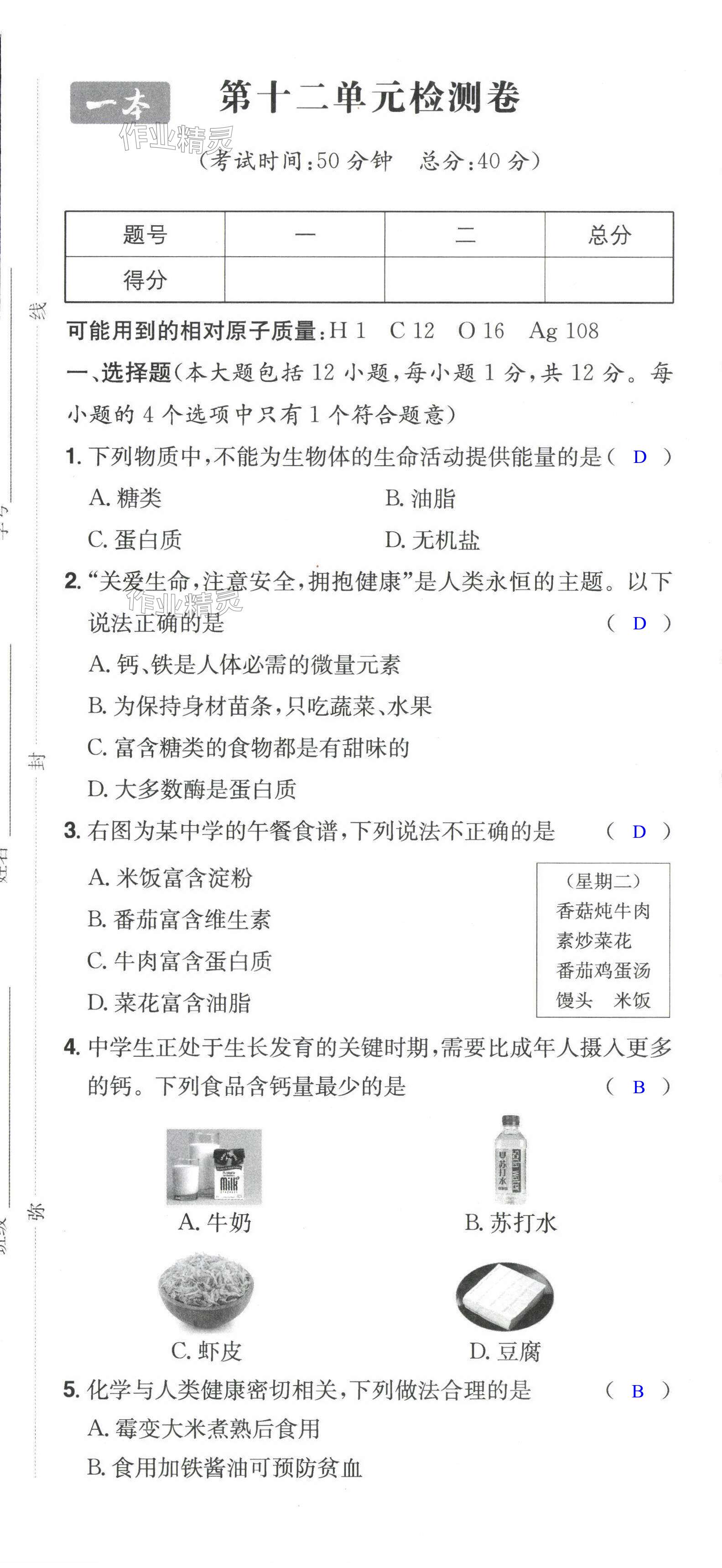 注:目前有些书本章节名称可能整理的还不是很完善,但都是按照顺序排列的,请同学们按照顺序仔细查找。练习册 2024年一本同步训练初中化学九年级下册人教版安徽专版 答案主要是用来给同学们做完题方便对答案用的,请勿直接抄袭。