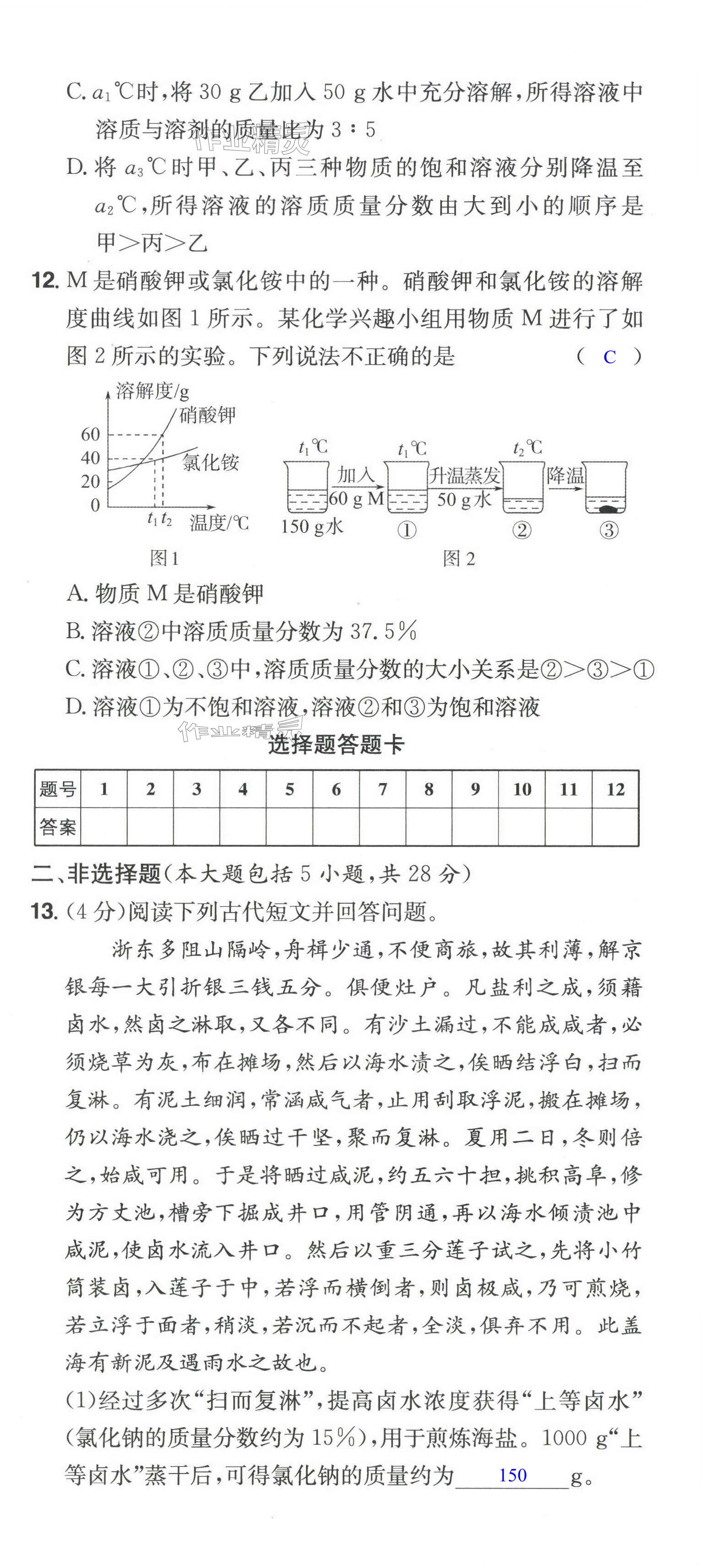 注:目前有些书本章节名称可能整理的还不是很完善,但都是按照顺序排列的,请同学们按照顺序仔细查找。练习册 2024年一本同步训练初中化学九年级下册人教版安徽专版 答案主要是用来给同学们做完题方便对答案用的,请勿直接抄袭。
