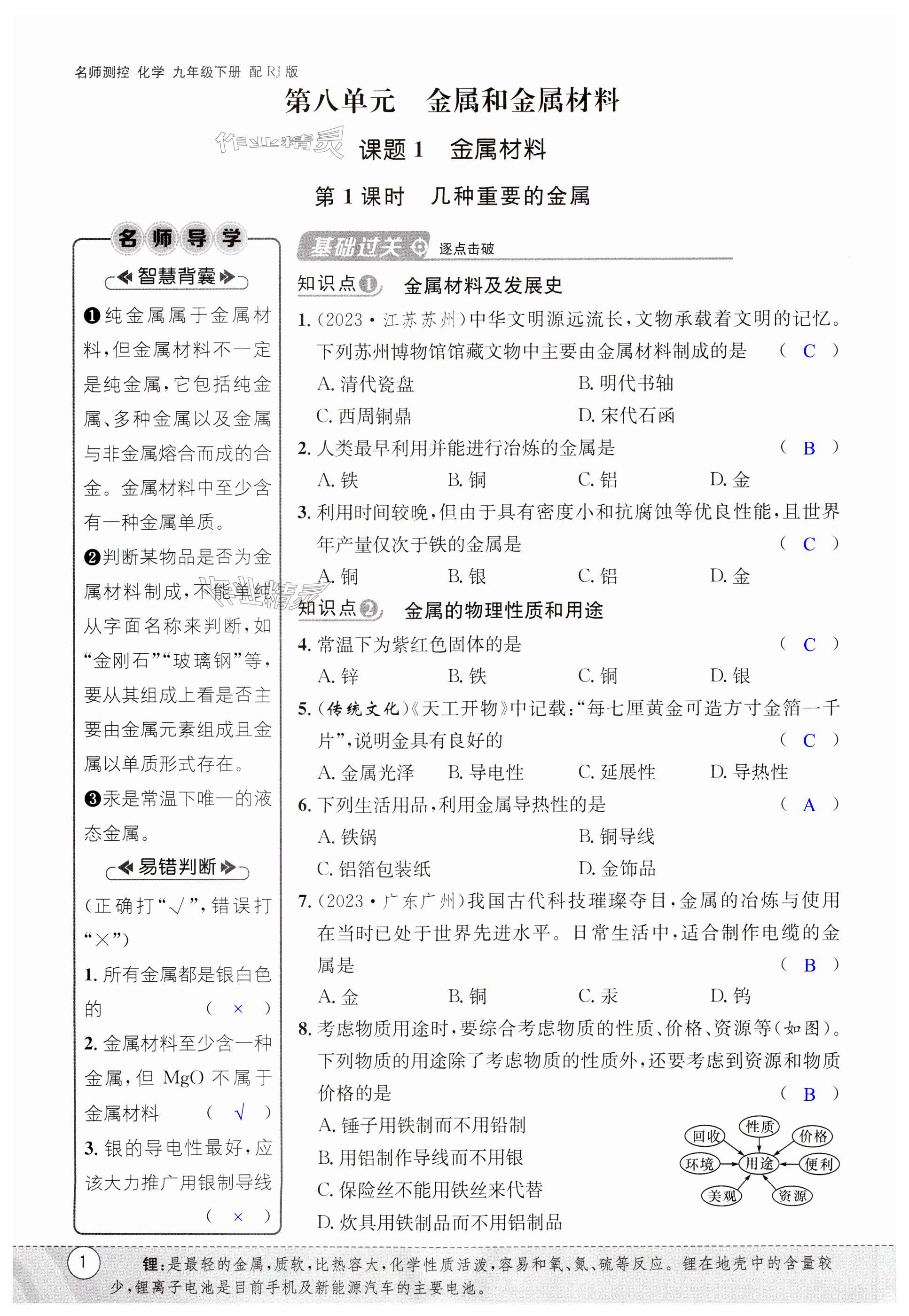 注:目前有些书本章节名称可能整理的还不是很完善,但都是按照顺序排列的,请同学们按照顺序仔细查找。练习册 2024年名师测控九年级化学下册人教版江西专版 答案主要是用来给同学们做完题方便对答案用的,请勿直接抄袭。