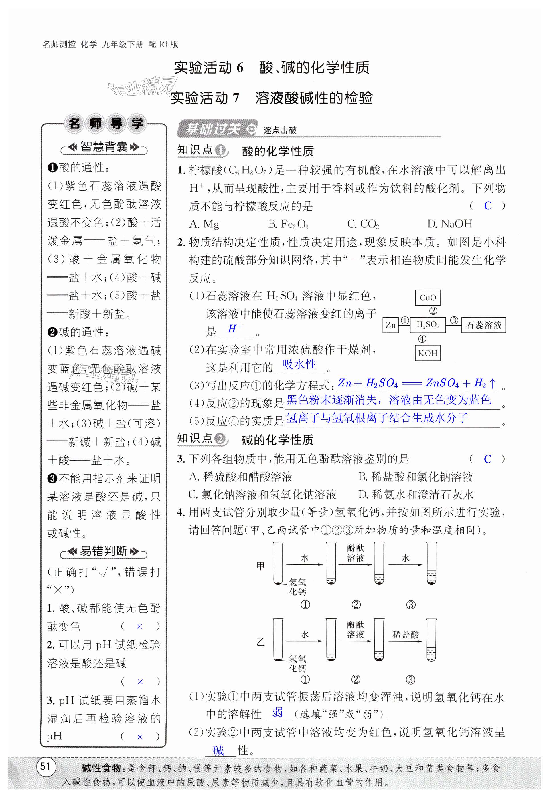 注:目前有些书本章节名称可能整理的还不是很完善,但都是按照顺序排列的,请同学们按照顺序仔细查找。练习册 2024年名师测控九年级化学下册人教版江西专版 答案主要是用来给同学们做完题方便对答案用的,请勿直接抄袭。