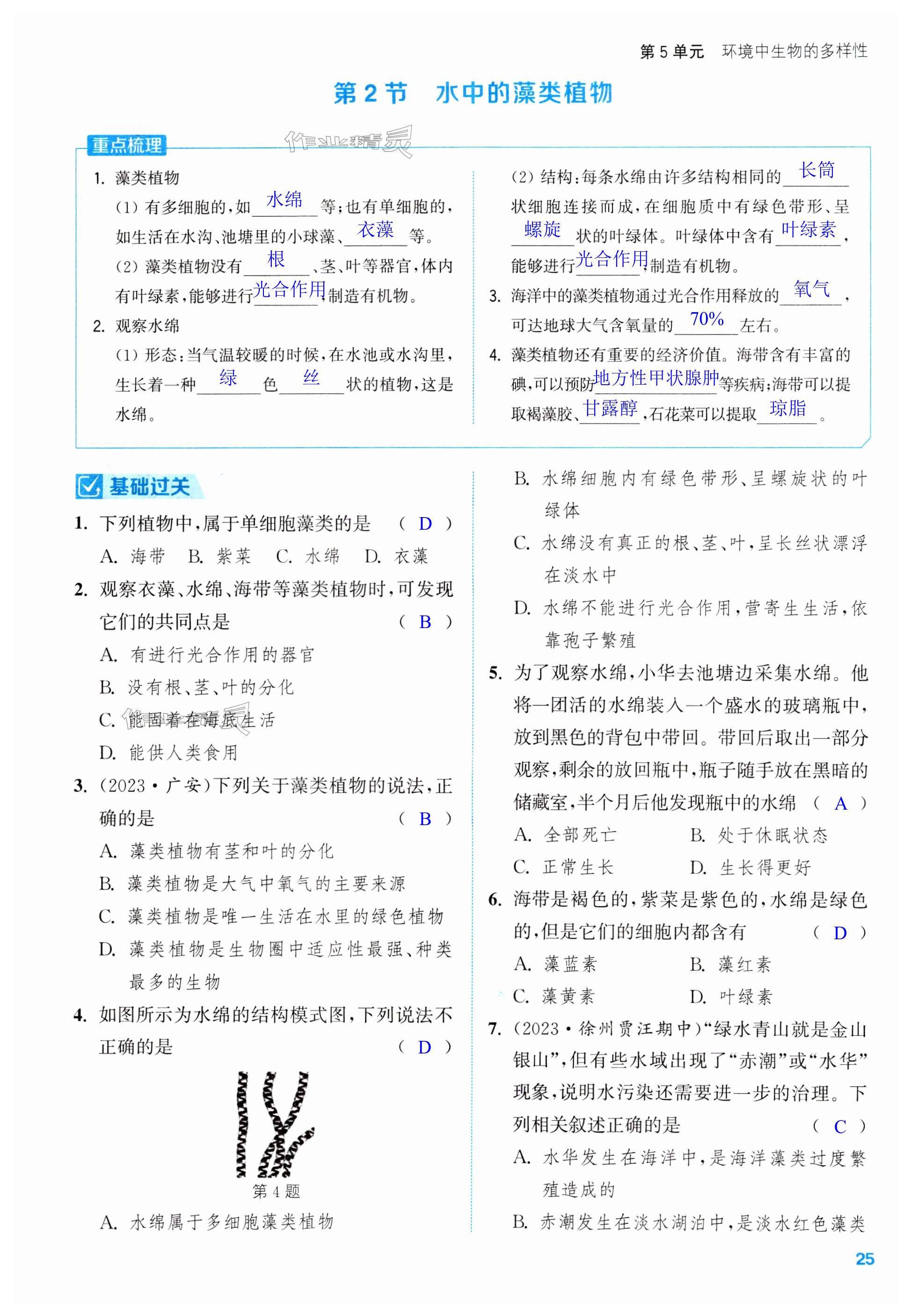 注:目前有些书本章节名称可能整理的还不是很完善,但都是按照顺序排列的,请同学们按照顺序仔细查找。练习册 2024年通城学典课时作业本七年级生物下册苏科版 答案主要是用来给同学们做完题方便对答案用的,请勿直接抄袭。