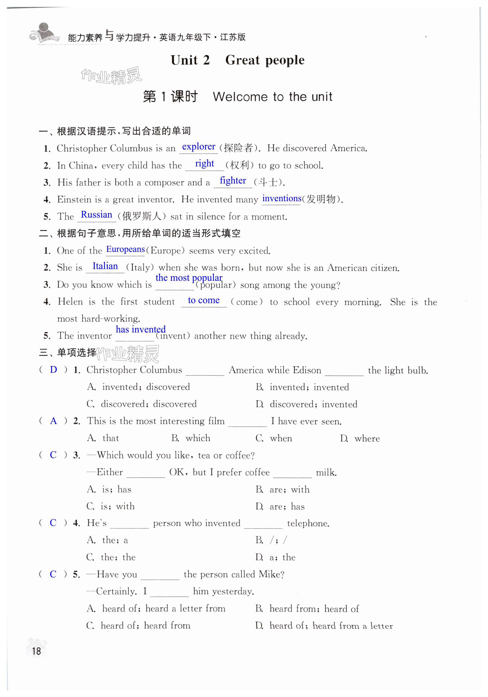 相关练习册答案