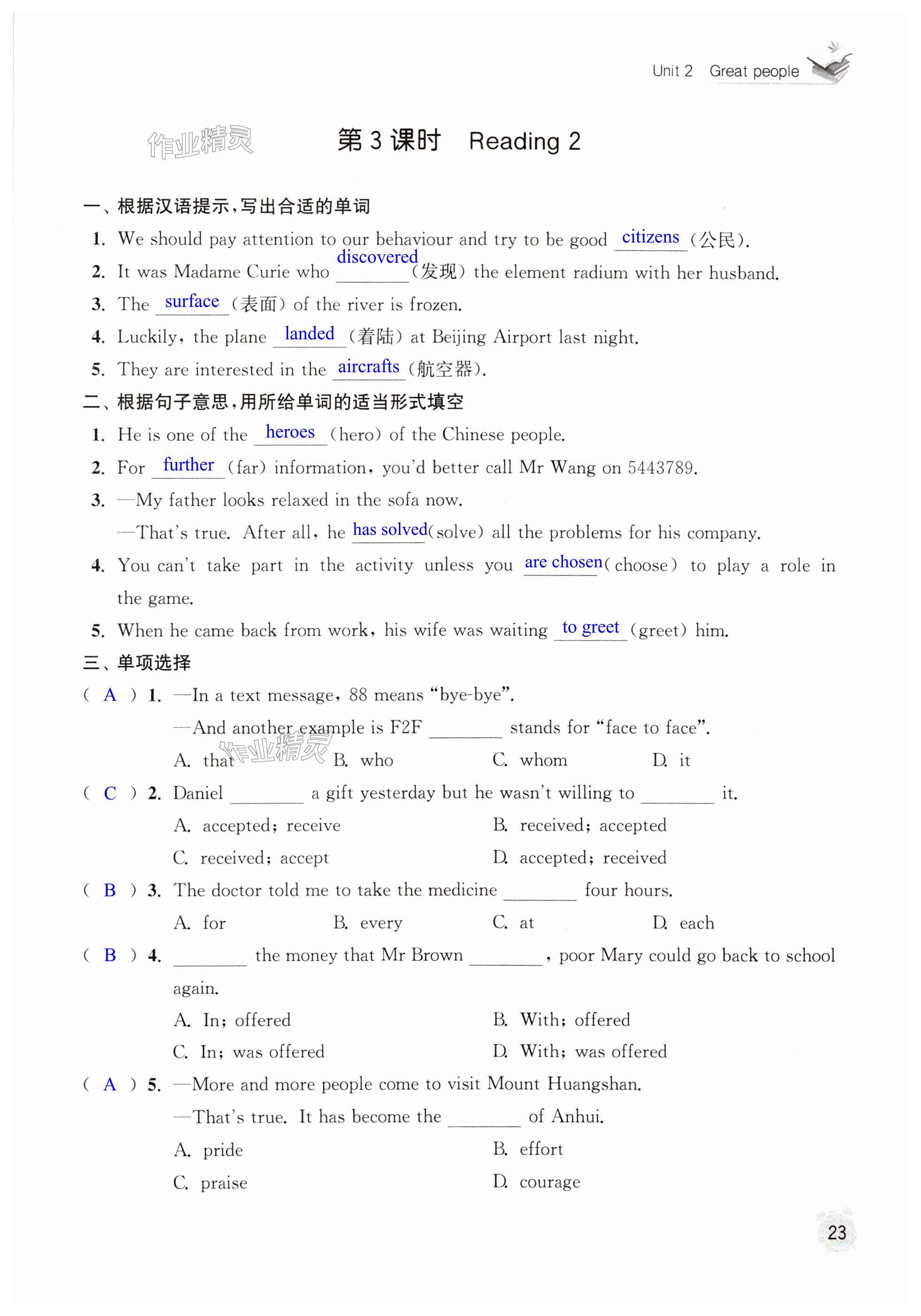 相关练习册答案