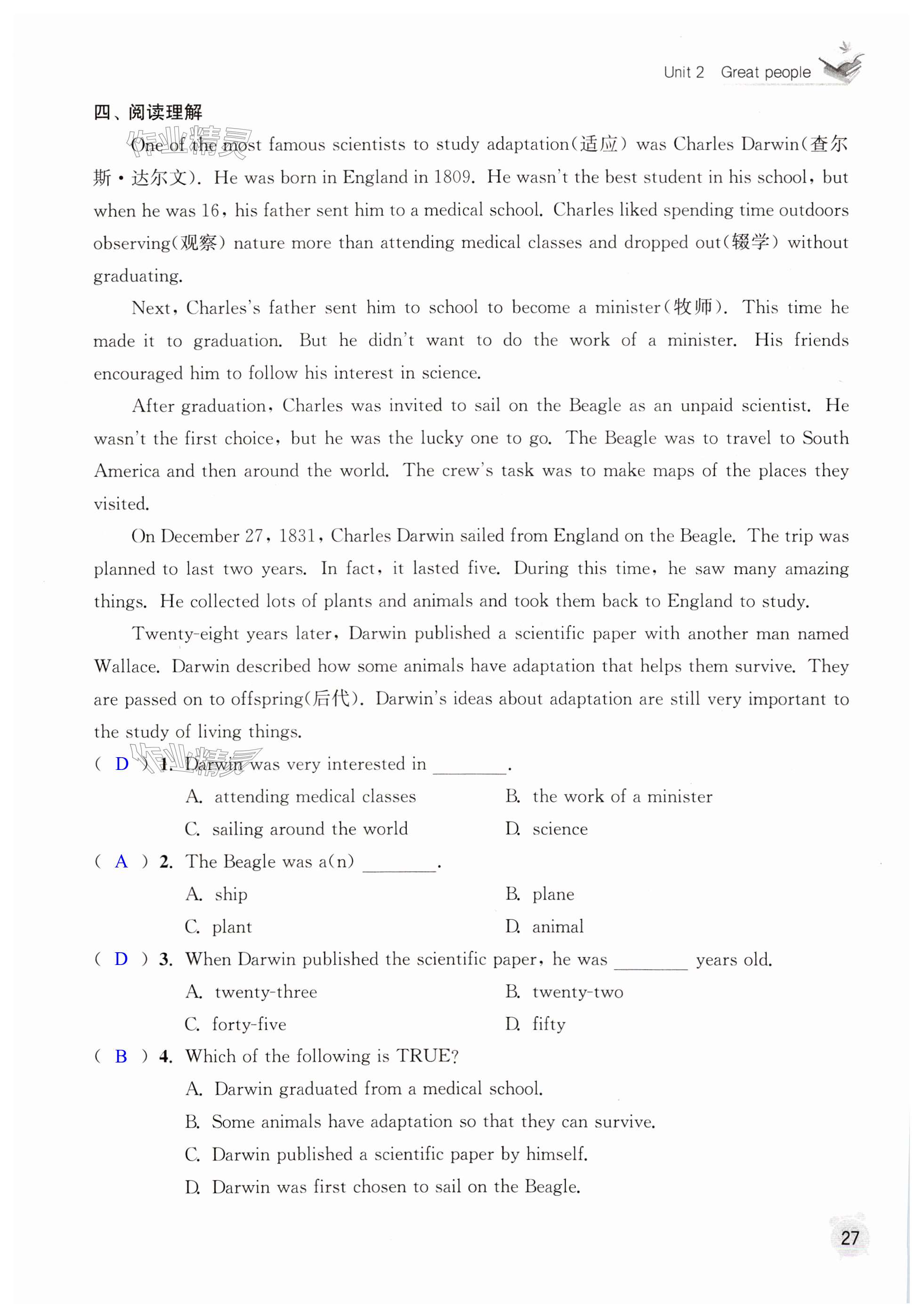 相关练习册答案