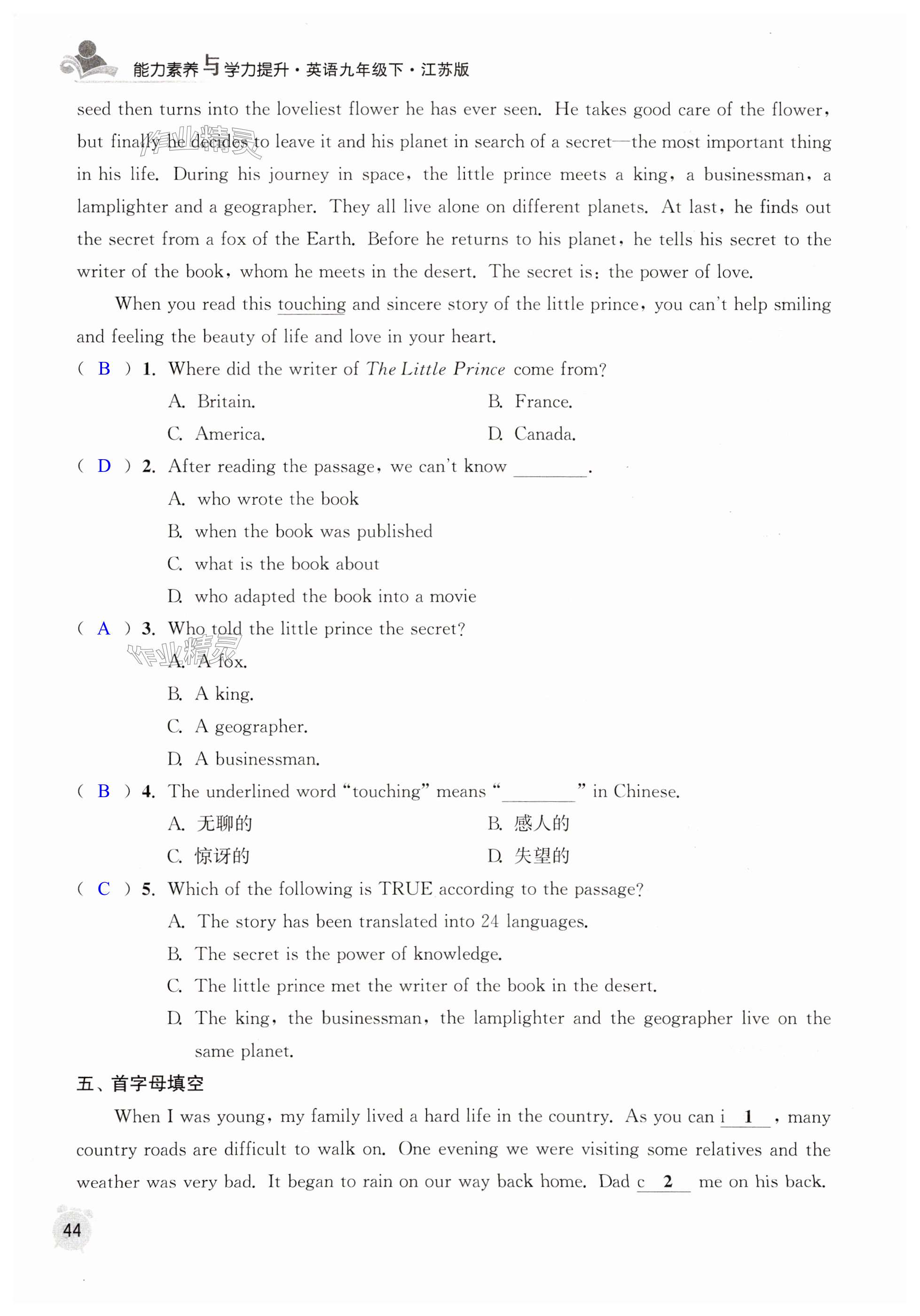 注:目前有些书本章节名称可能整理的还不是很完善,但都是按照顺序排列的,请同学们按照顺序仔细查找。练习册 2024年能力素养与学力提升九年级英语下册译林版 答案主要是用来给同学们做完题方便对答案用的,请勿直接抄袭。