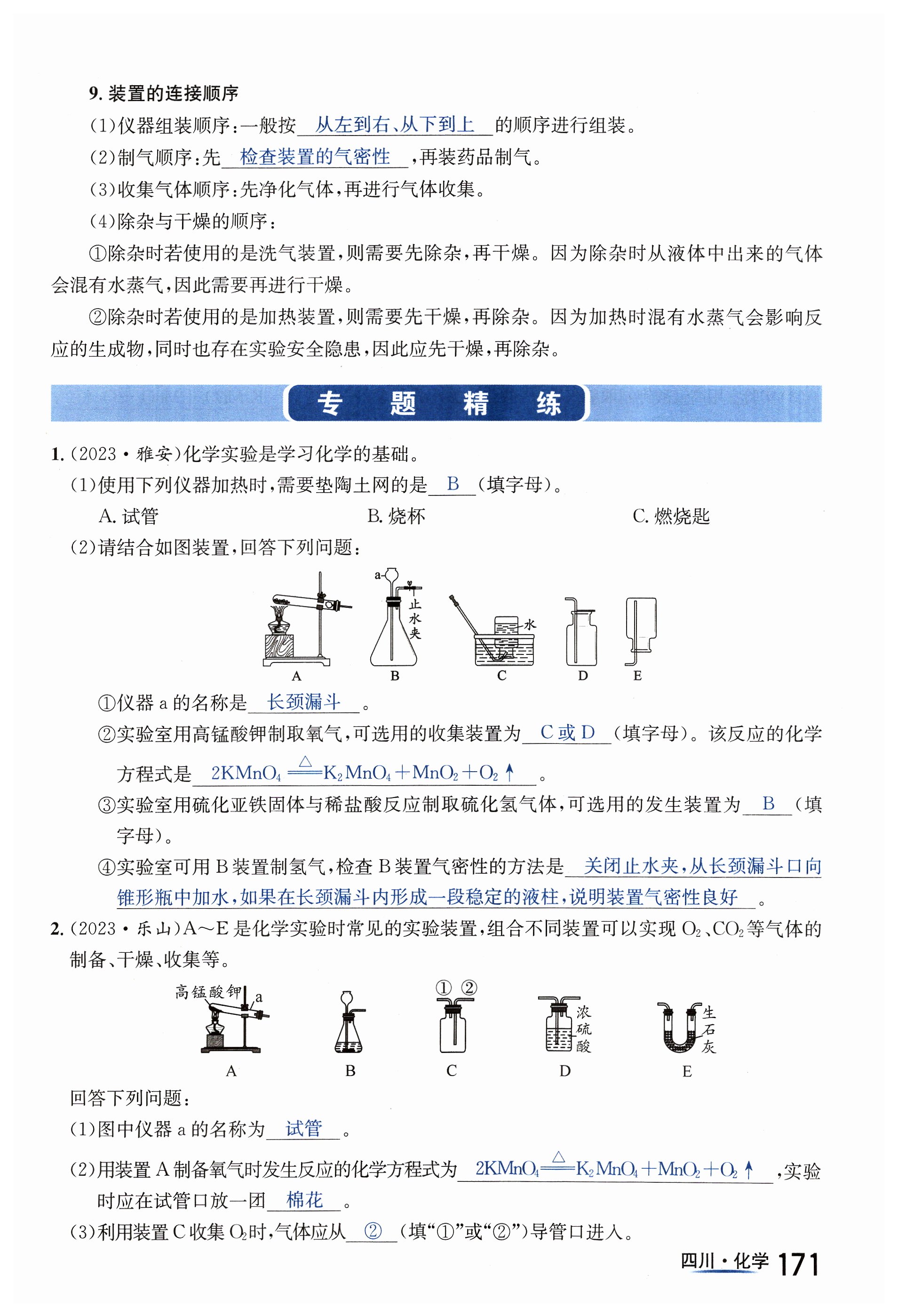 注:目前有些书本章节名称可能整理的还不是很完善,但都是按照顺序排列的,请同学们按照顺序仔细查找。练习册 2024年中考2号化学四川专版 答案主要是用来给同学们做完题方便对答案用的,请勿直接抄袭。