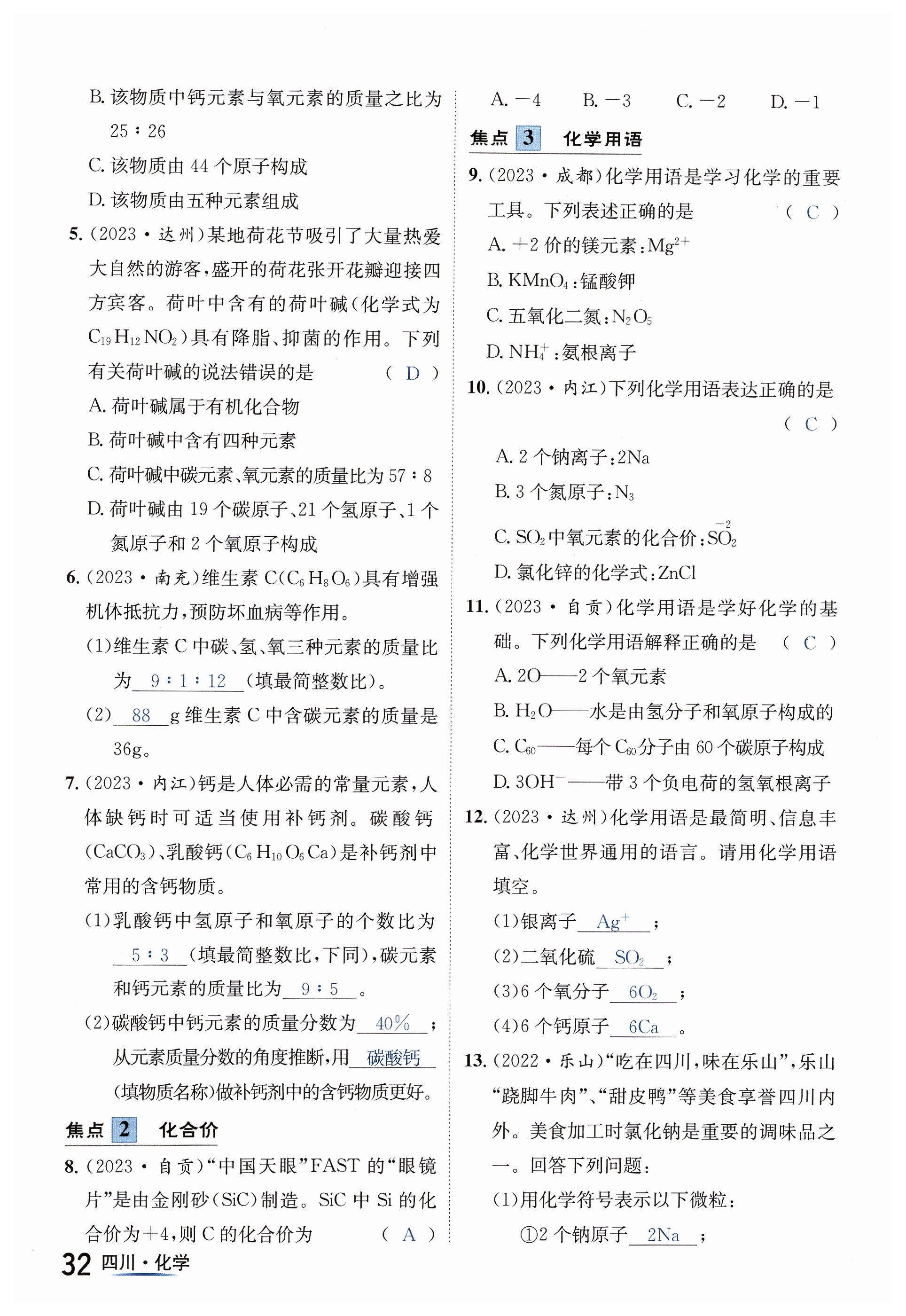 注:目前有些书本章节名称可能整理的还不是很完善,但都是按照顺序排列的,请同学们按照顺序仔细查找。练习册 2024年中考2号化学四川专版 答案主要是用来给同学们做完题方便对答案用的,请勿直接抄袭。