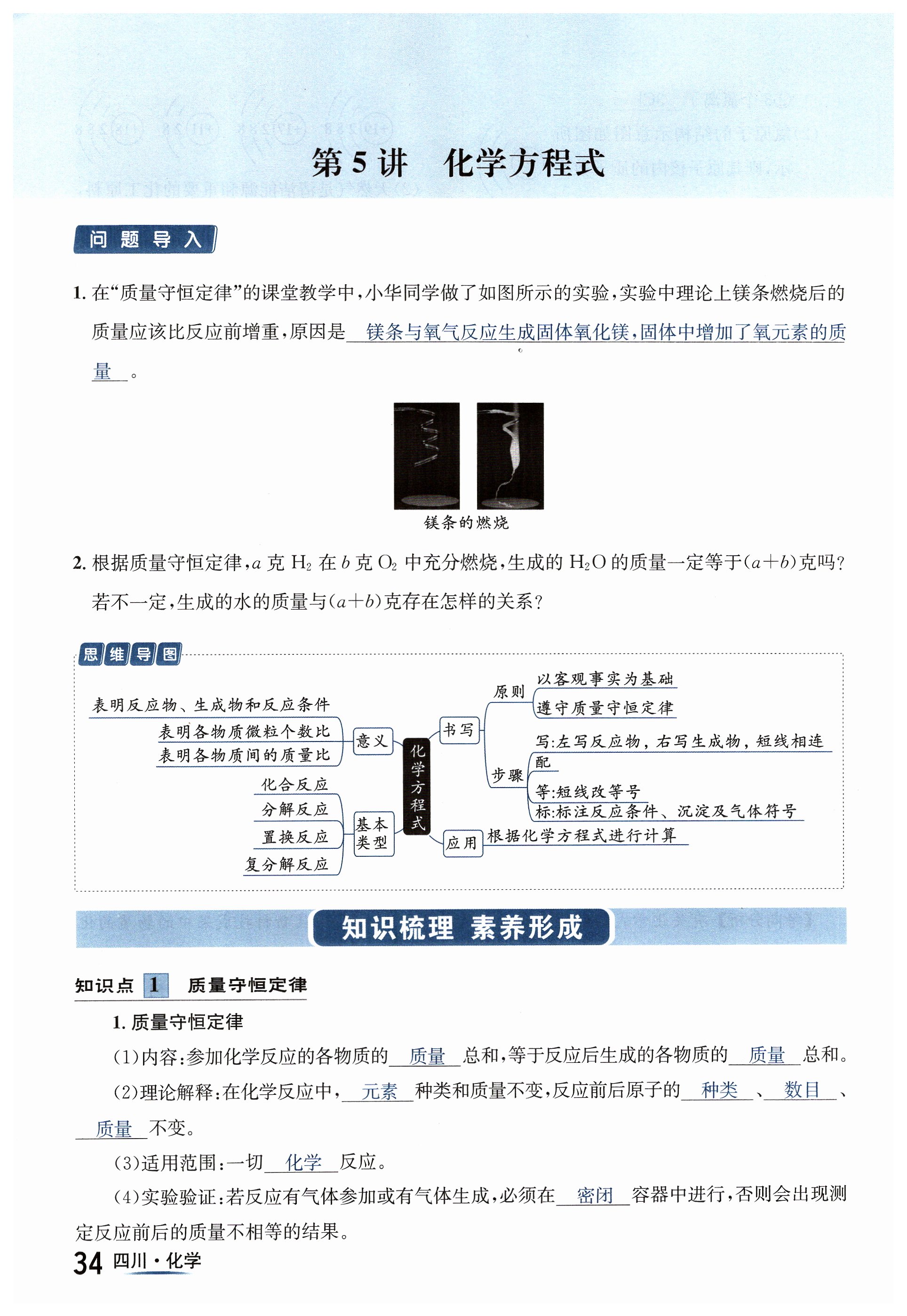 注:目前有些书本章节名称可能整理的还不是很完善,但都是按照顺序排列的,请同学们按照顺序仔细查找。练习册 2024年中考2号化学四川专版 答案主要是用来给同学们做完题方便对答案用的,请勿直接抄袭。