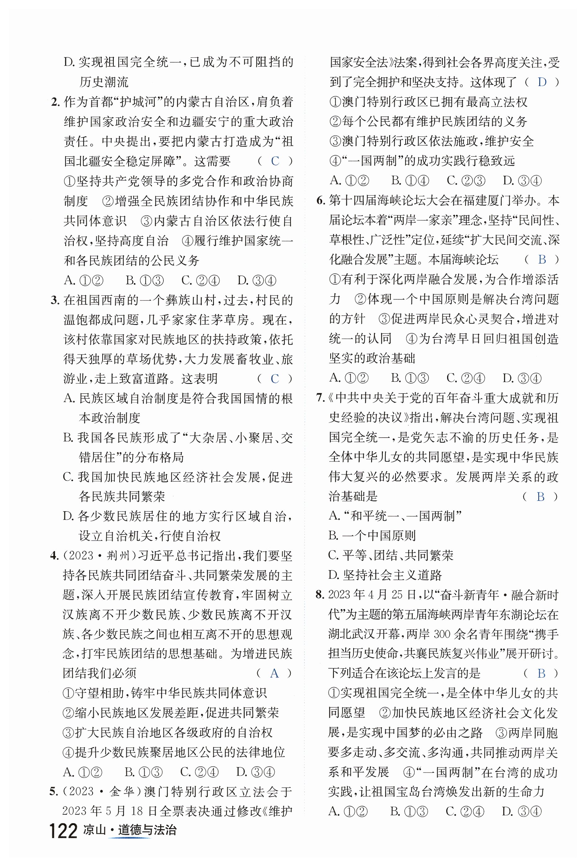 注:目前有些书本章节名称可能整理的还不是很完善,但都是按照顺序排列的,请同学们按照顺序仔细查找。练习册 2024年国华考试中考总动员道德与法治凉山专版 答案主要是用来给同学们做完题方便对答案用的,请勿直接抄袭。