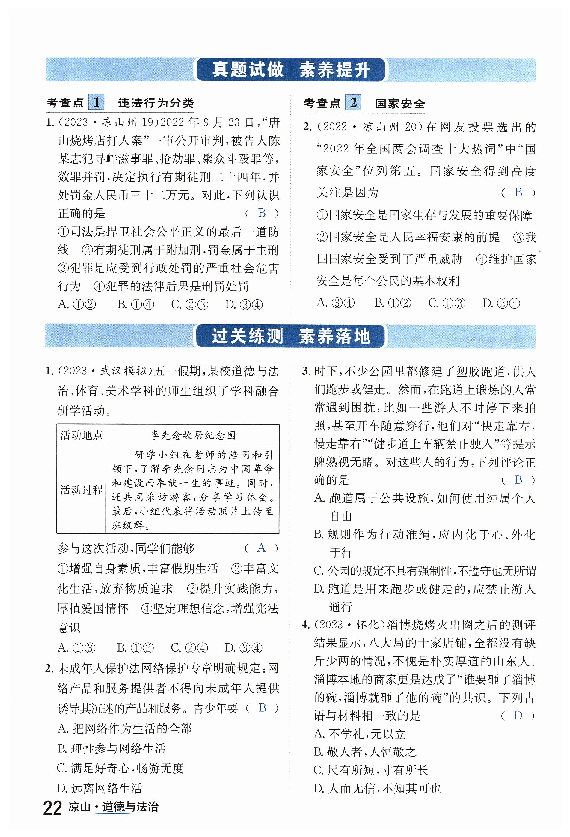 注:目前有些书本章节名称可能整理的还不是很完善,但都是按照顺序排列的,请同学们按照顺序仔细查找。练习册 2024年国华考试中考总动员道德与法治凉山专版 答案主要是用来给同学们做完题方便对答案用的,请勿直接抄袭。