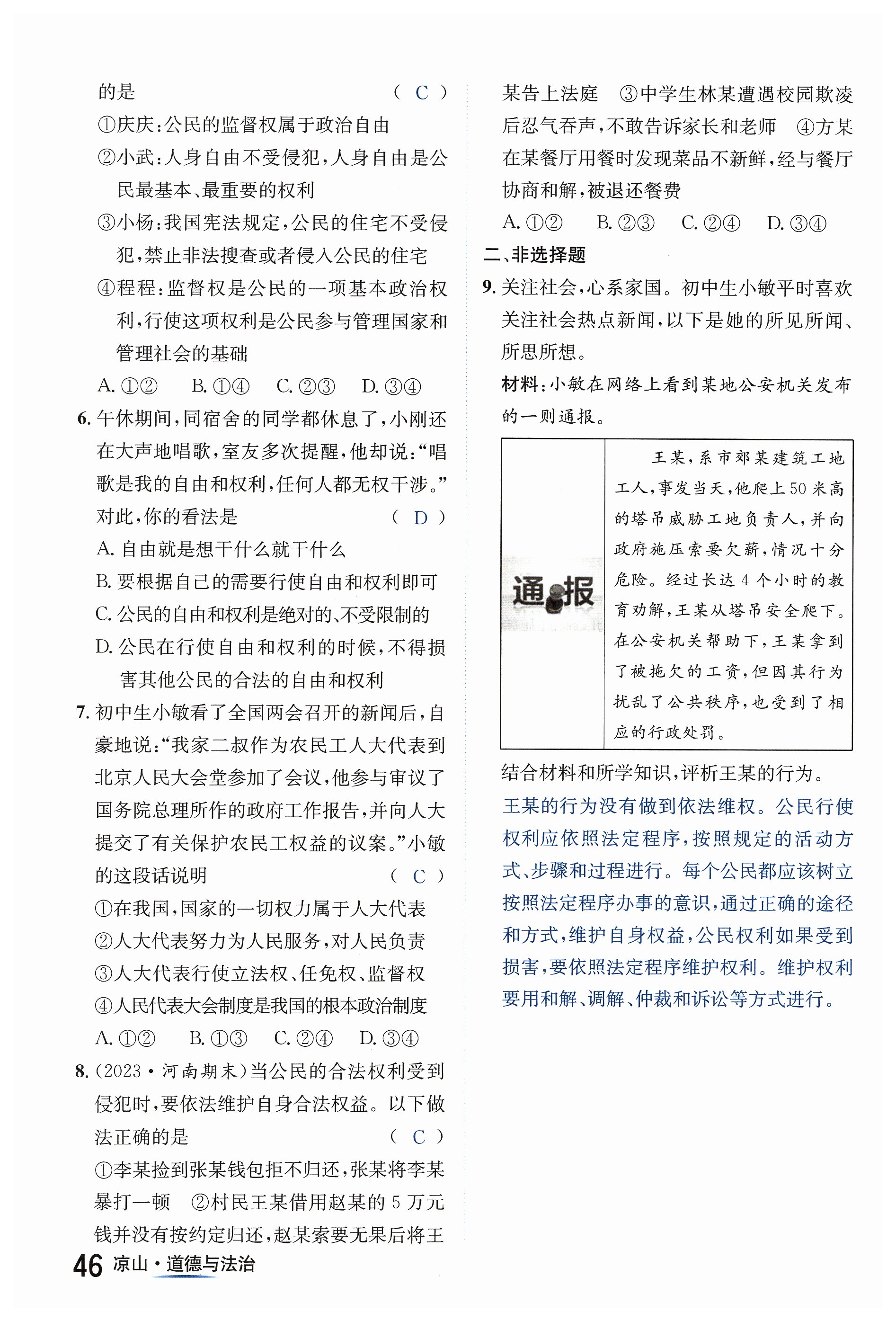 注:目前有些书本章节名称可能整理的还不是很完善,但都是按照顺序排列的,请同学们按照顺序仔细查找。练习册 2024年国华考试中考总动员道德与法治凉山专版 答案主要是用来给同学们做完题方便对答案用的,请勿直接抄袭。