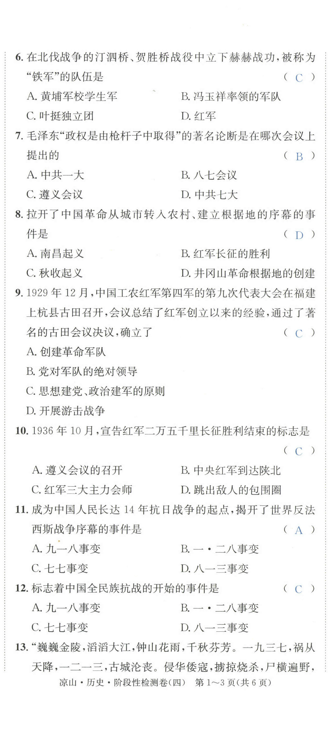 注:目前有些书本章节名称可能整理的还不是很完善,但都是按照顺序排列的,请同学们按照顺序仔细查找。练习册 2024年国华考试中考总动员历史凉山专版 答案主要是用来给同学们做完题方便对答案用的,请勿直接抄袭。