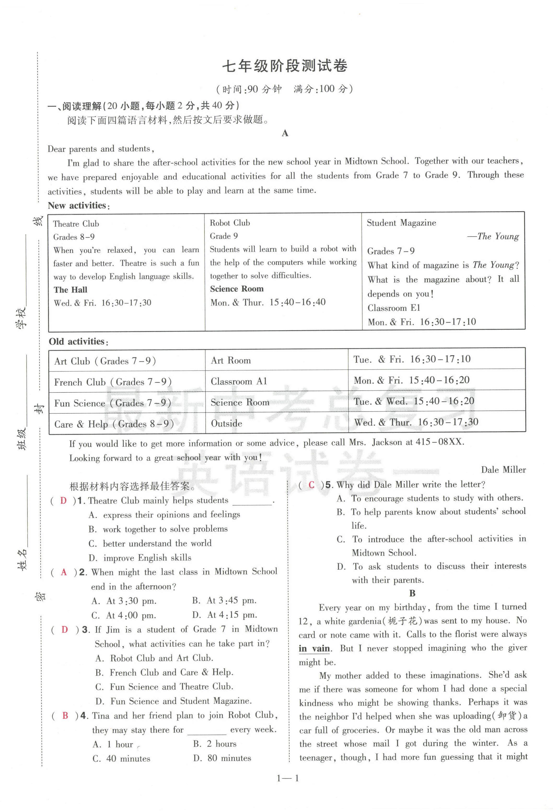 注:目前有些书本章节名称可能整理的还不是很完善,但都是按照顺序排列的,请同学们按照顺序仔细查找。练习册 2024年洪文教育最新中考英语河南专版 答案主要是用来给同学们做完题方便对答案用的,请勿直接抄袭。