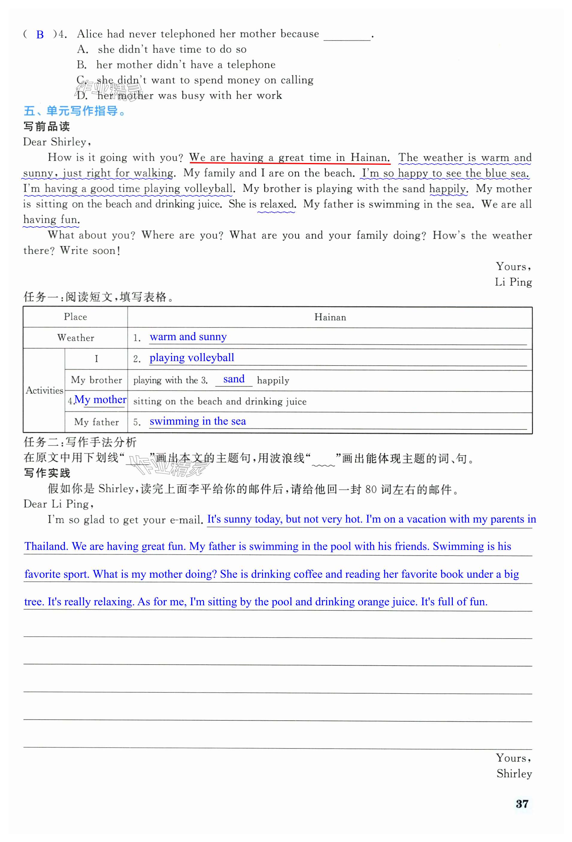 注:目前有些书本章节名称可能整理的还不是很完善,但都是按照顺序排列的,请同学们按照顺序仔细查找。练习册 2024年精彩练习就练这一本七年级英语下册人教版浙江专版 答案主要是用来给同学们做完题方便对答案用的,请勿直接抄袭。