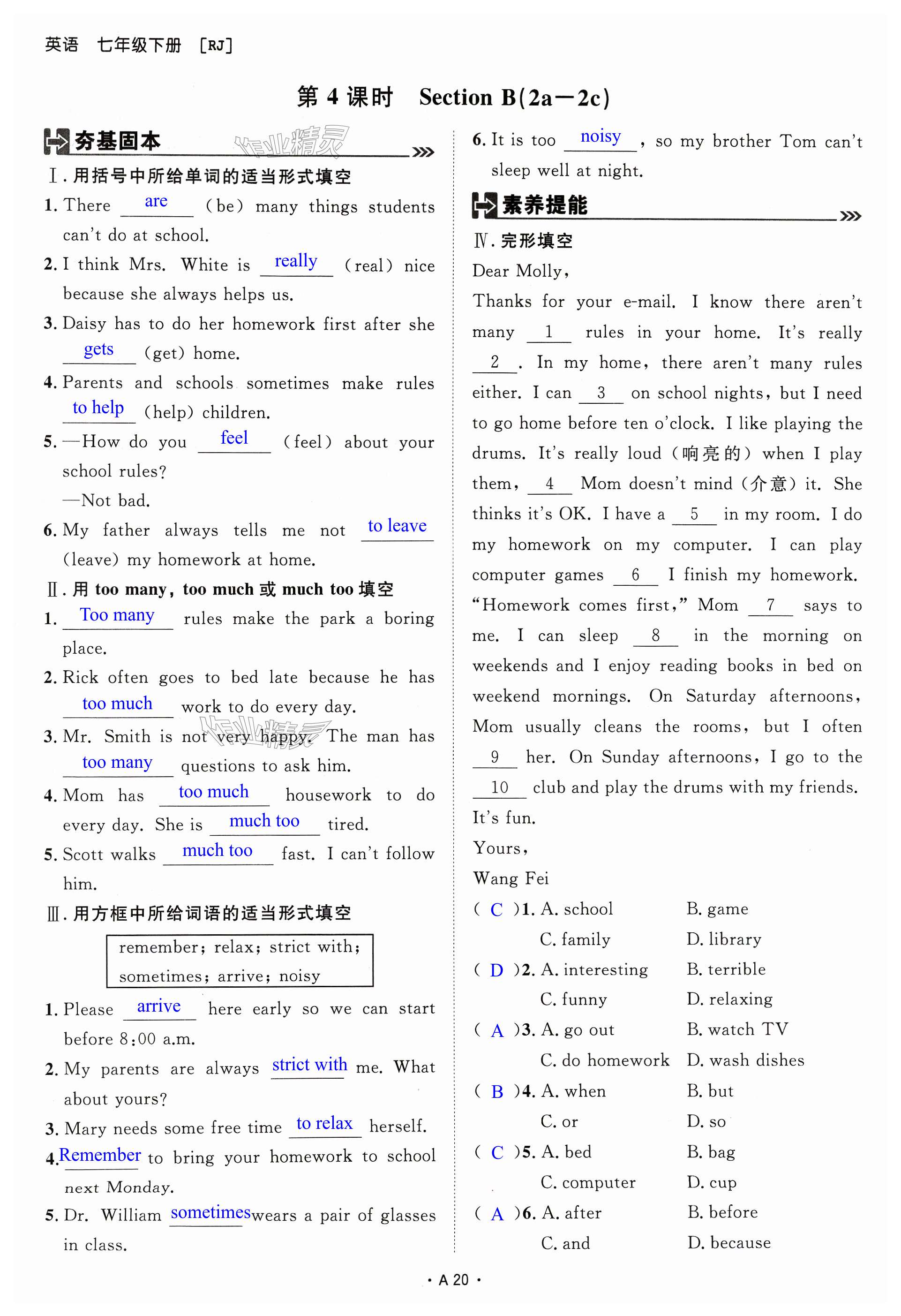注:目前有些书本章节名称可能整理的还不是很完善,但都是按照顺序排列的,请同学们按照顺序仔细查找。练习册 2024年全效学习七年级英语下册人教版精华版 答案主要是用来给同学们做完题方便对答案用的,请勿直接抄袭。