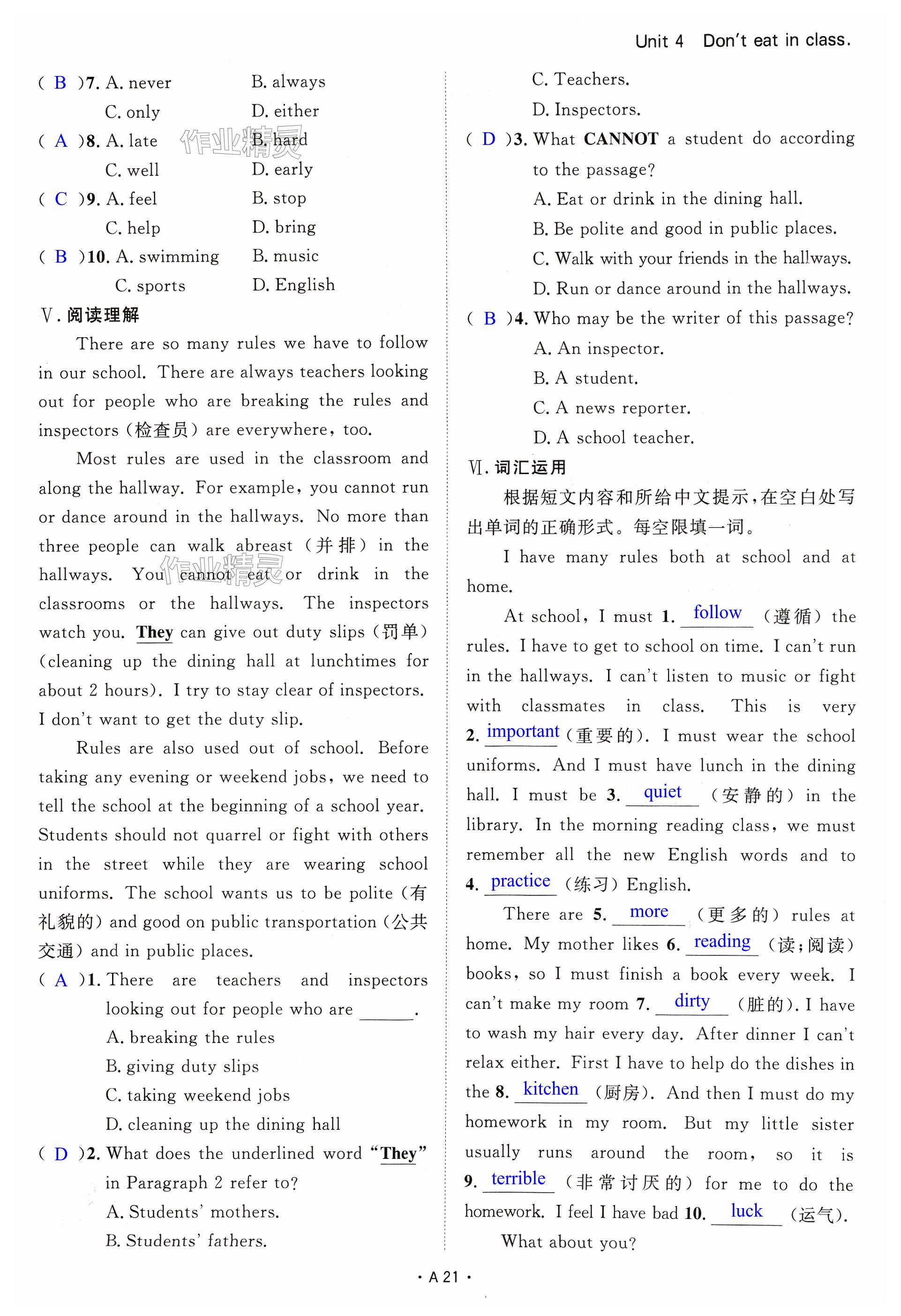 注:目前有些书本章节名称可能整理的还不是很完善,但都是按照顺序排列的,请同学们按照顺序仔细查找。练习册 2024年全效学习七年级英语下册人教版精华版 答案主要是用来给同学们做完题方便对答案用的,请勿直接抄袭。
