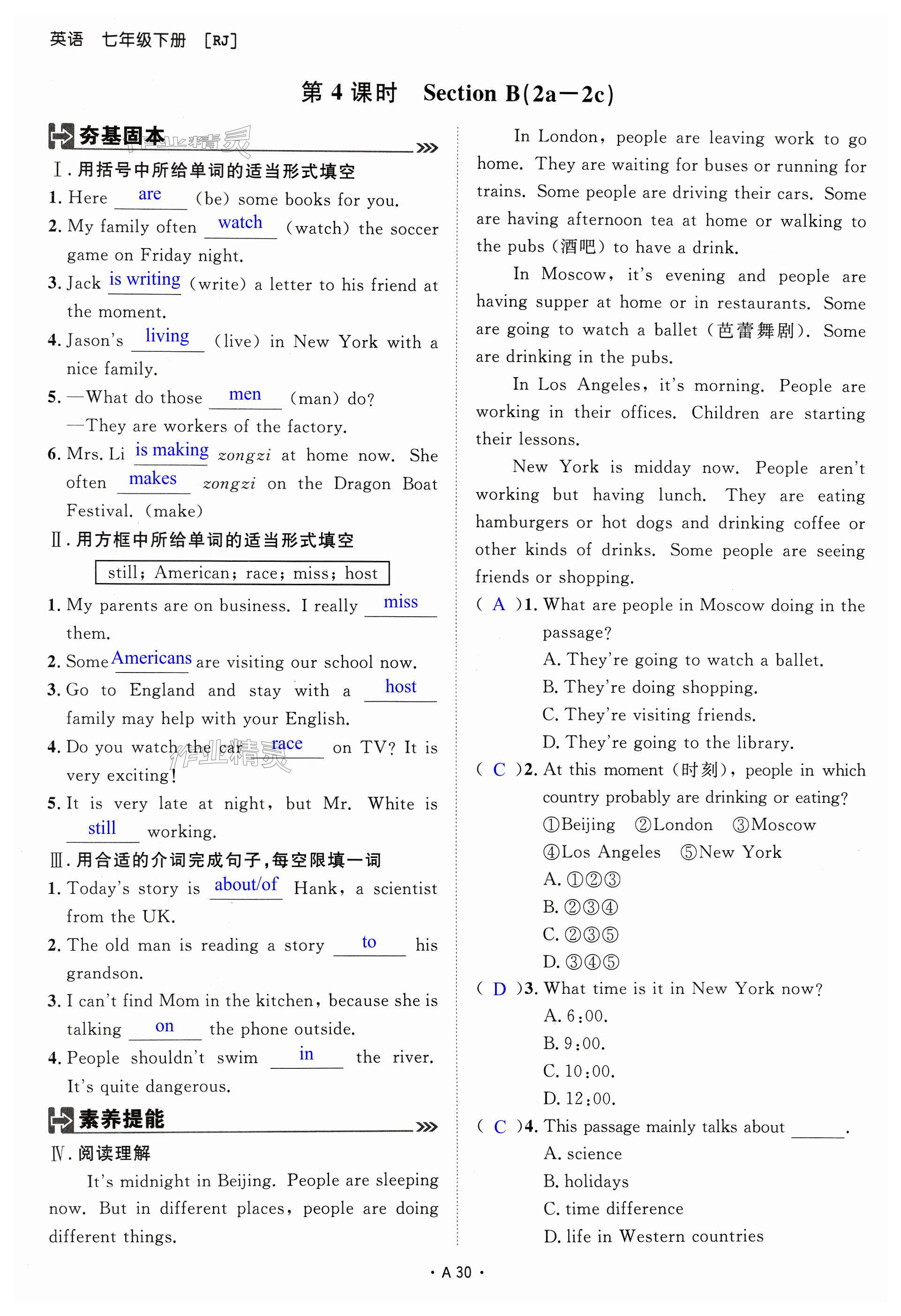 注:目前有些书本章节名称可能整理的还不是很完善,但都是按照顺序排列的,请同学们按照顺序仔细查找。练习册 2024年全效学习七年级英语下册人教版精华版 答案主要是用来给同学们做完题方便对答案用的,请勿直接抄袭。