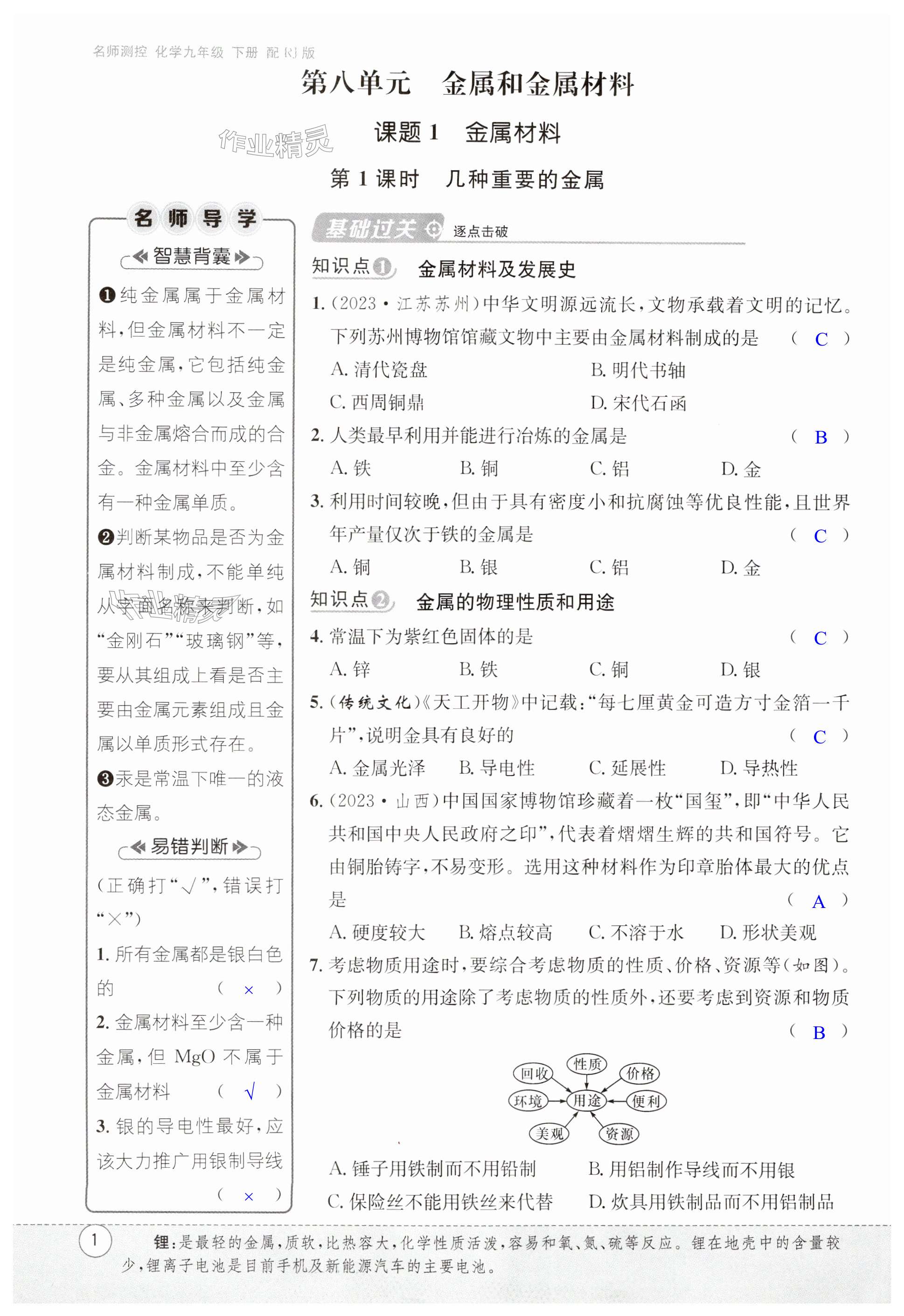 注:目前有些书本章节名称可能整理的还不是很完善,但都是按照顺序排列的,请同学们按照顺序仔细查找。练习册 2024年名师测控九年级化学下册人教版湖北专版 答案主要是用来给同学们做完题方便对答案用的,请勿直接抄袭。