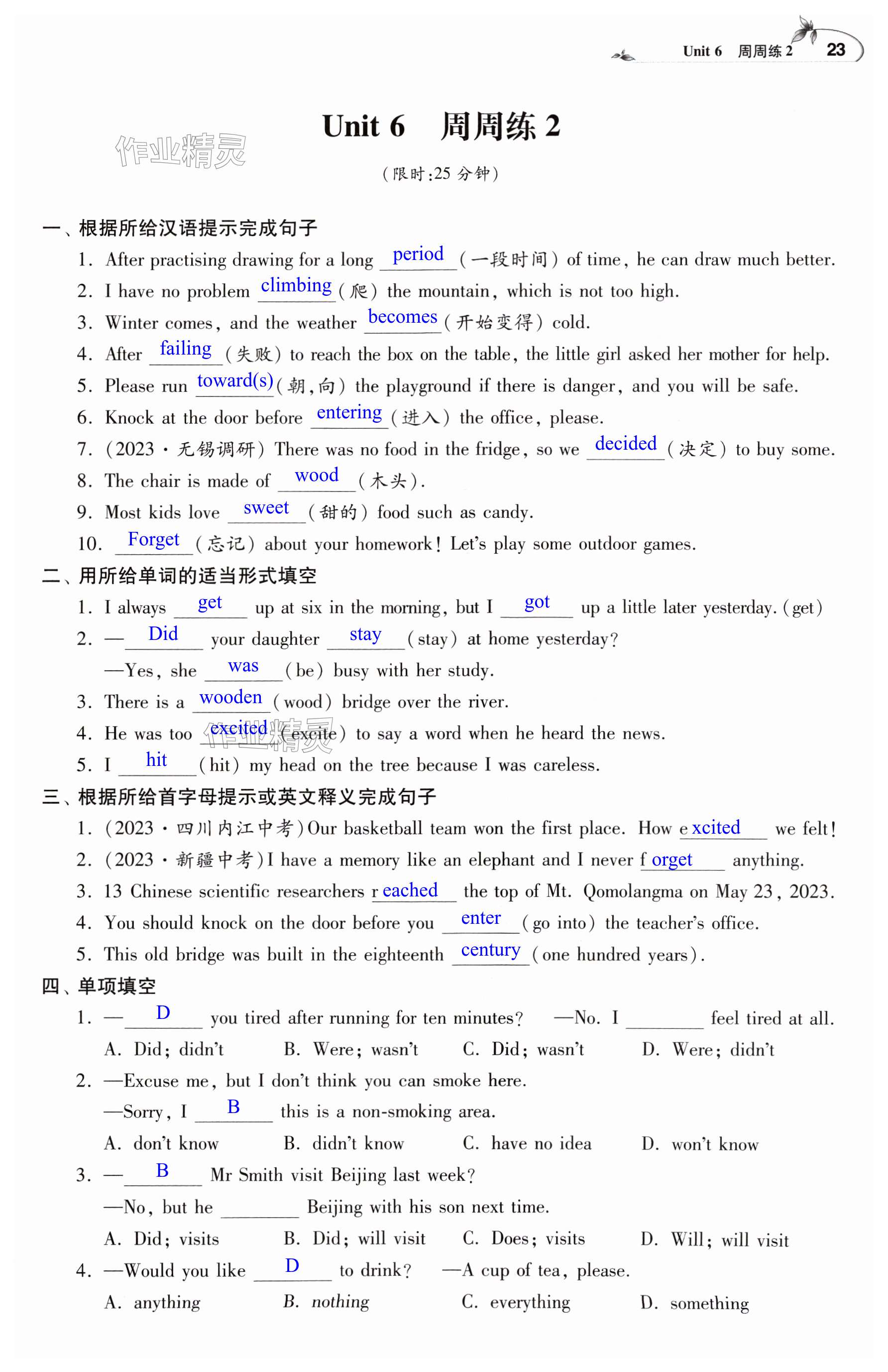 相关练习册答案