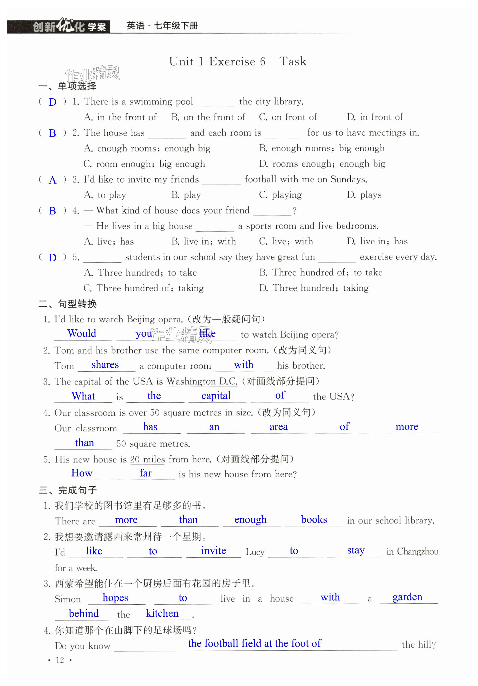 注:目前有些书本章节名称可能整理的还不是很完善,但都是按照顺序排列的,请同学们按照顺序仔细查找。练习册 2024年创新优化学案七年级英语下册译林版 答案主要是用来给同学们做完题方便对答案用的,请勿直接抄袭。